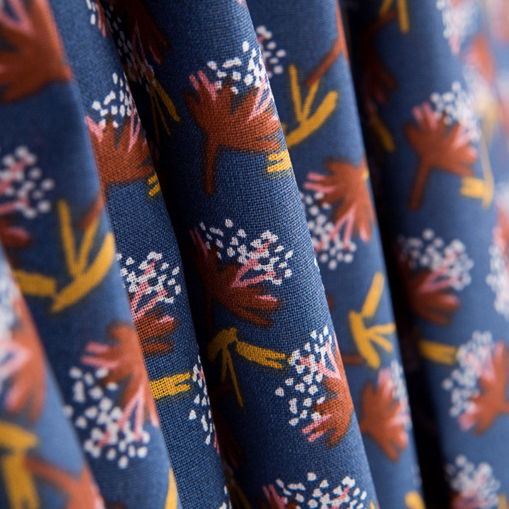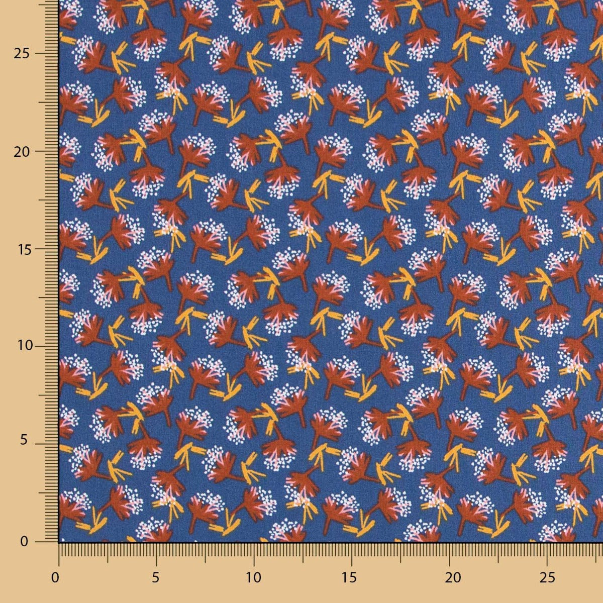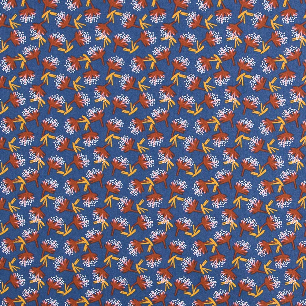 Tela de algodón bouquet marino. El popelín de algodón es una tela sostenida, fina, muy suave y muy versátil. El popelín es una tela básica ideal para confeccionar cojines, sábanas, patchwork y todo tipo de decoraciones. Telas con certificado OEKO-TEX
