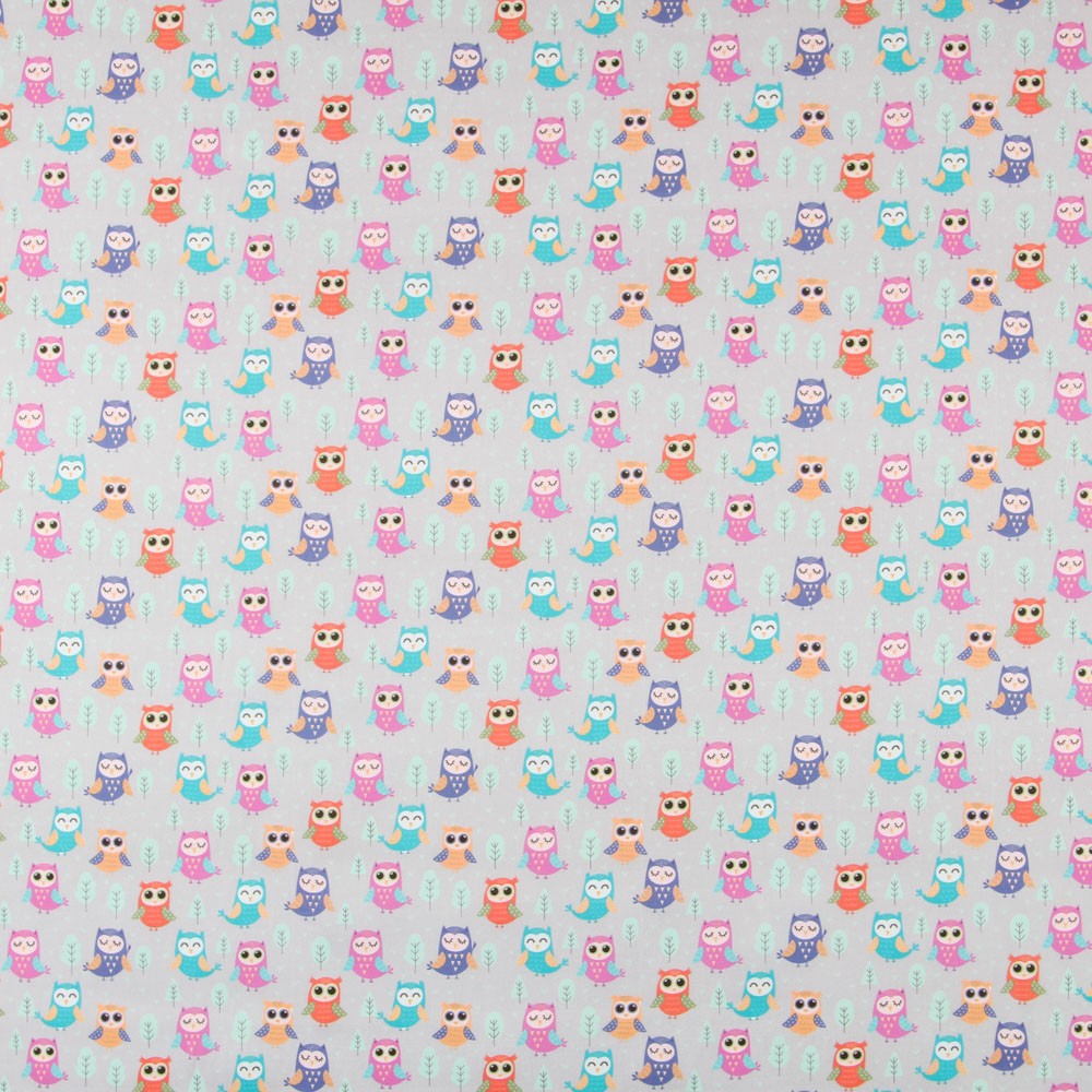Tela de búhos sobre una base de algodón satinado. El algodón satinado es una tela de popelín pero con un acabado más suave, fino y fluido. Tela estampada de algodón infantil ideal para decoración camisas y vestiditos. También puedes confeccionar todo tipo de accesorios y aplicaciones. Al ser una tela de algodón 100% es preferible lavar antes de manipular.