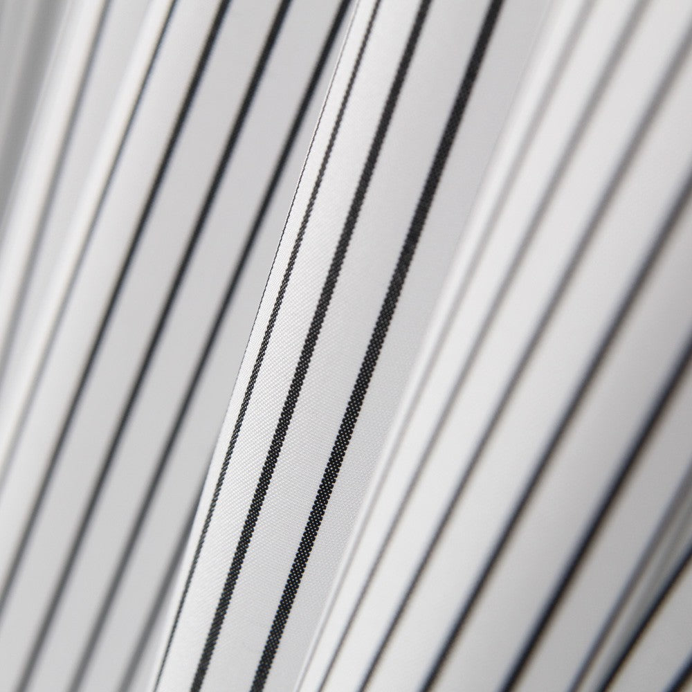 Tela para camisería italiana de rayas negras. Tela de algodón para camisas de rayas fluidas y finas de gran calidad.