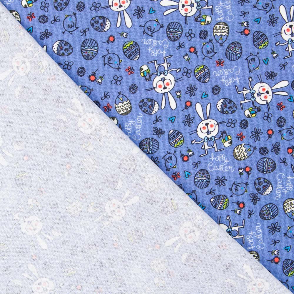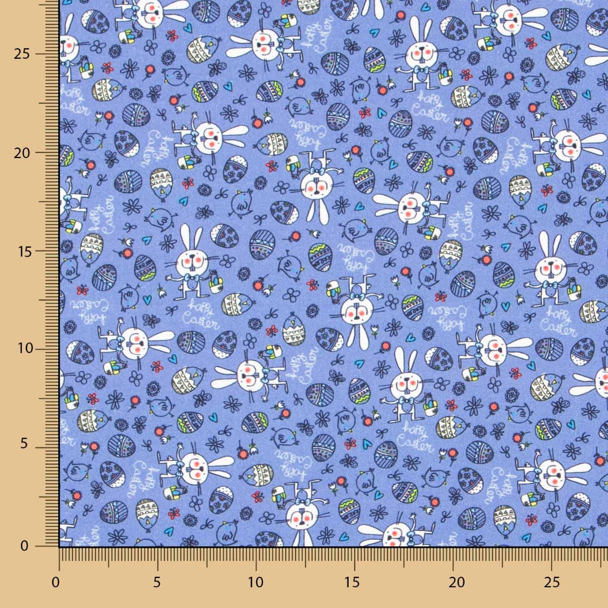 Tela estampada de conejitos de pascua morada. El popelín es una tela de algodón muy versátil, suave, fina y sostenida. Tela de algodón ideal para accesorios, decoración del hogar, patchwork e incluso mascarillas.