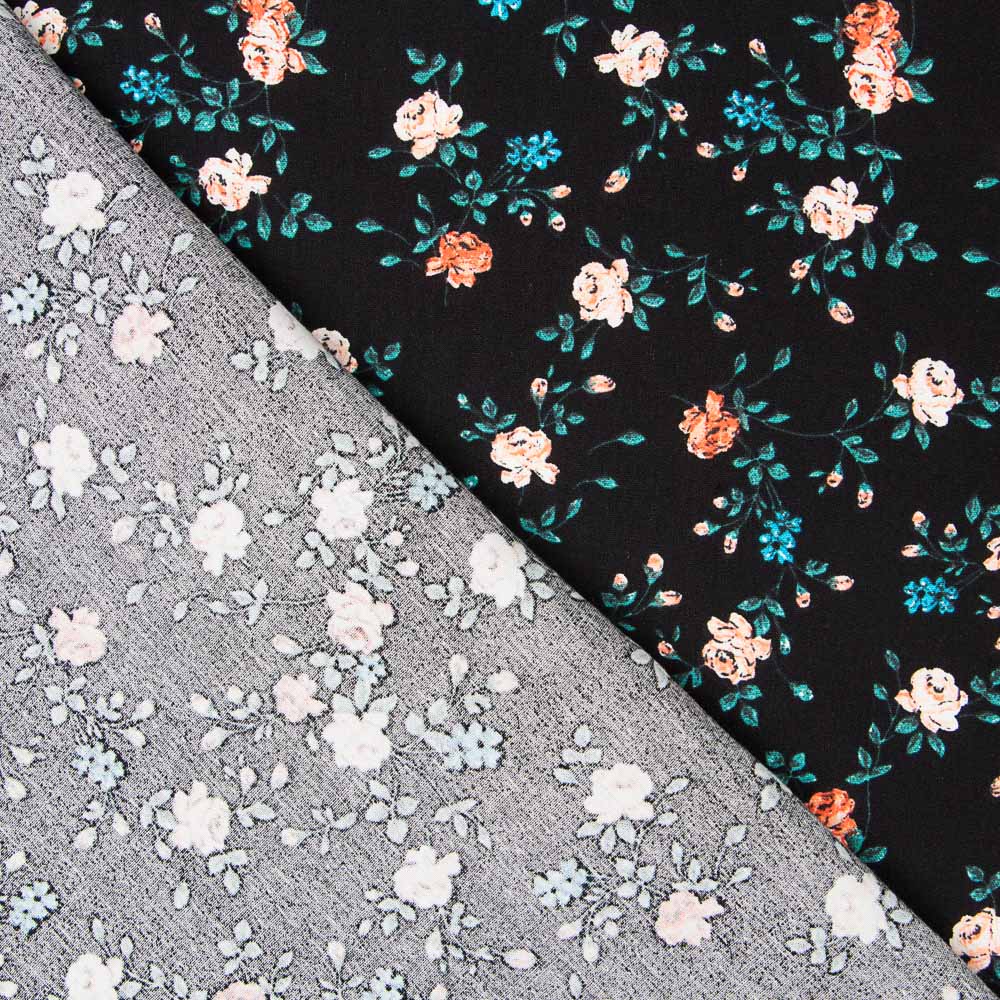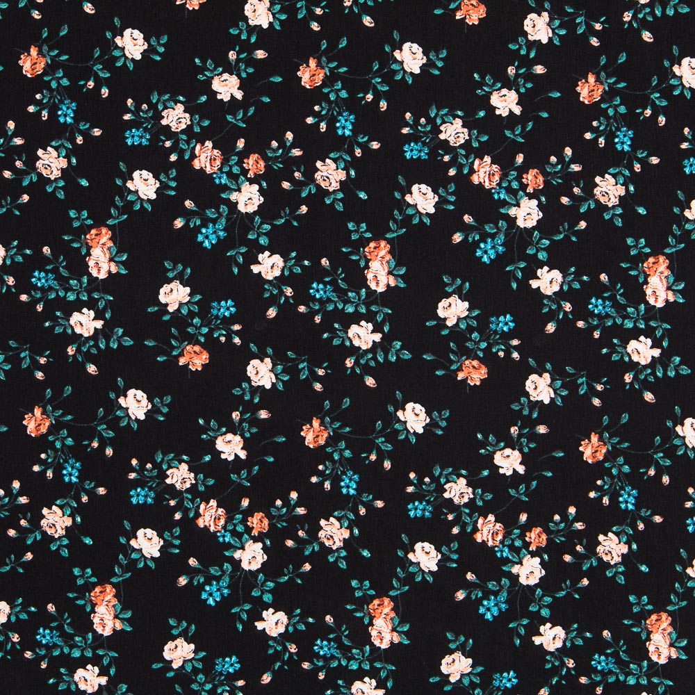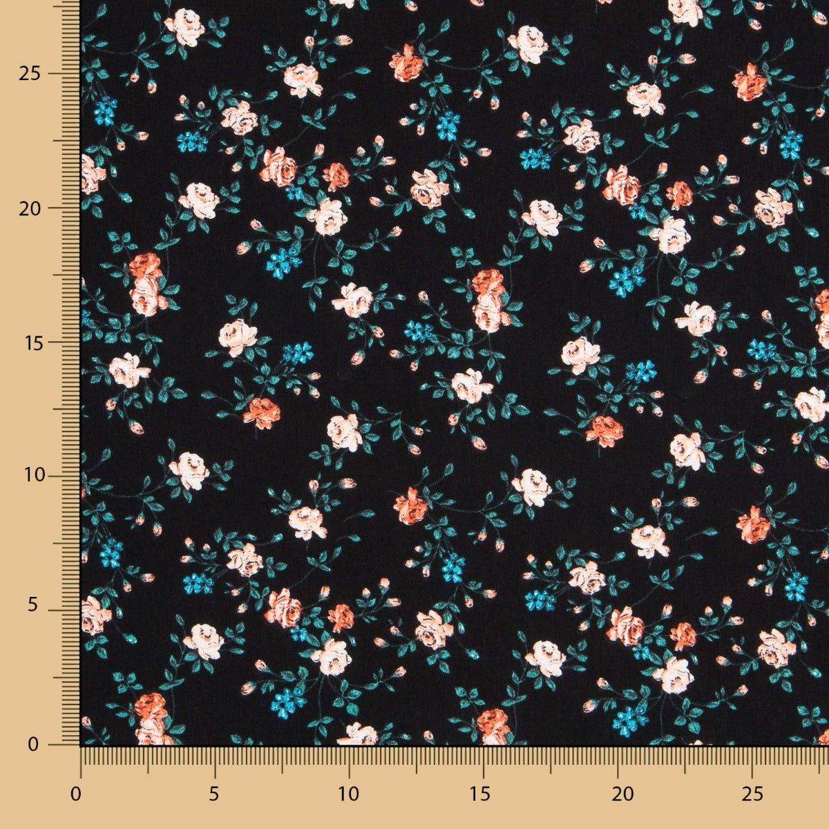 Tela de algodón de flores sobre fondo negro de algodón. El popelín es una tela de algodón muy versátil, suave, fina y sostenida. Tela de algodón ideal para accesorios, decoración del hogar, patchwork e incluso mascarillas. Al ser un tejido 100% algodón, es preferible un lavado antes de manipular la tela.