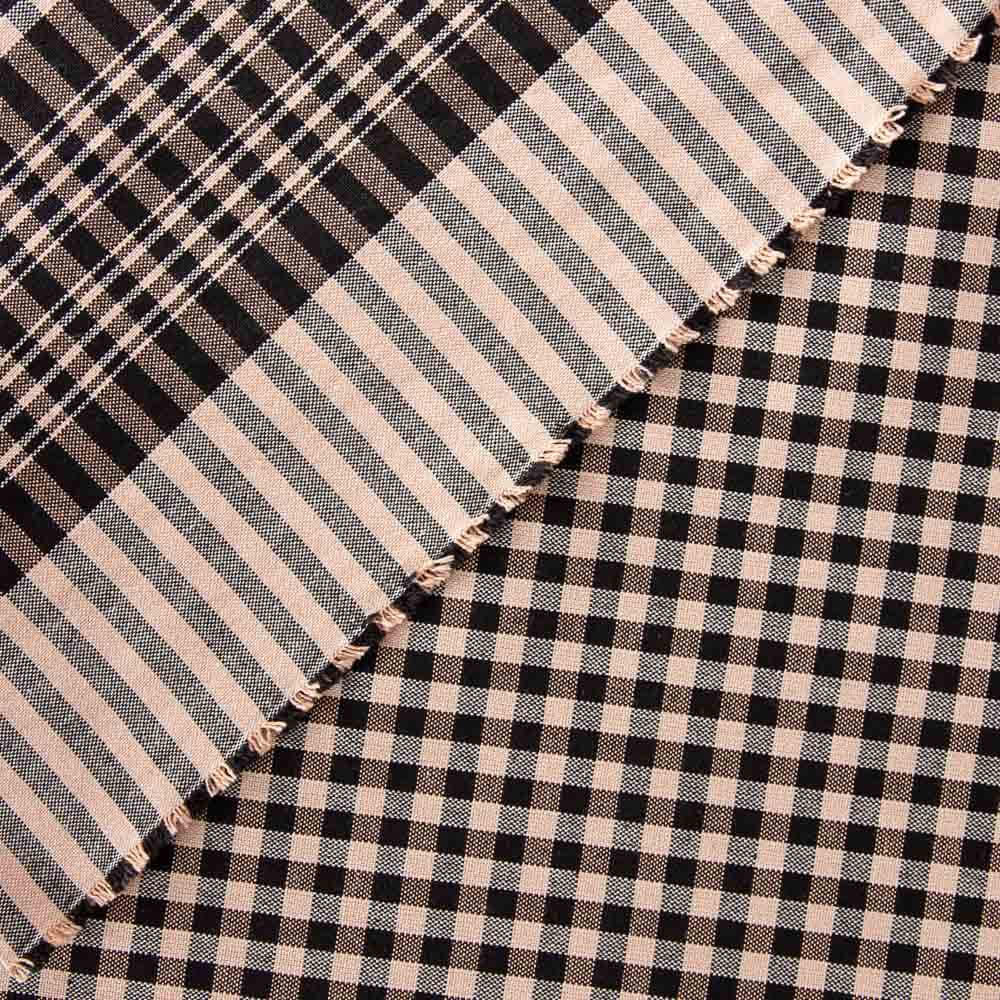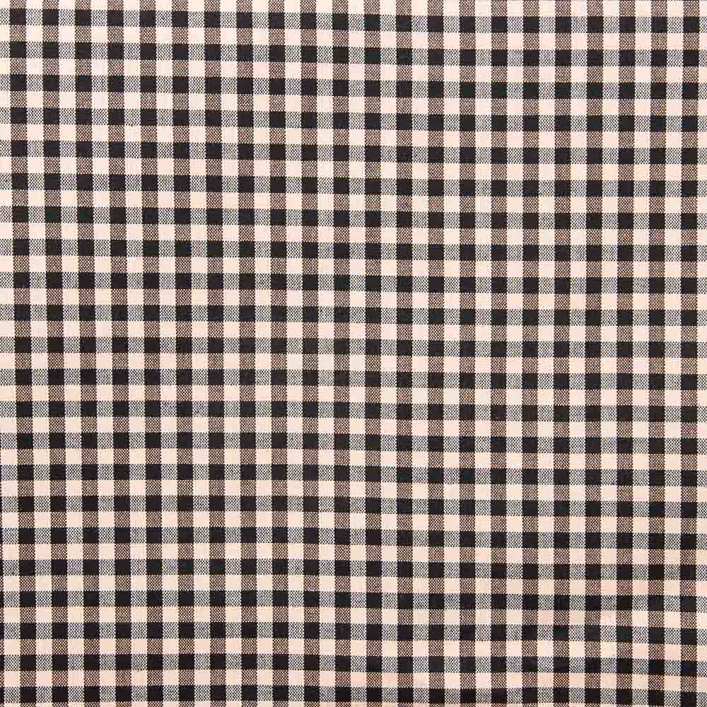 Tejido natural tipo loneta, de pañuelo fardero clásico de cuadros negros y salmón.