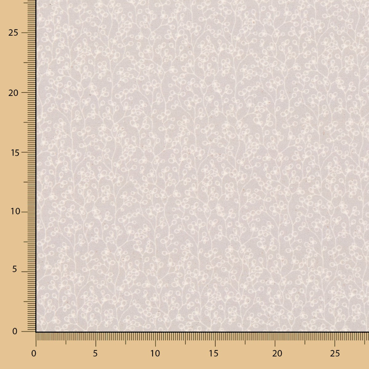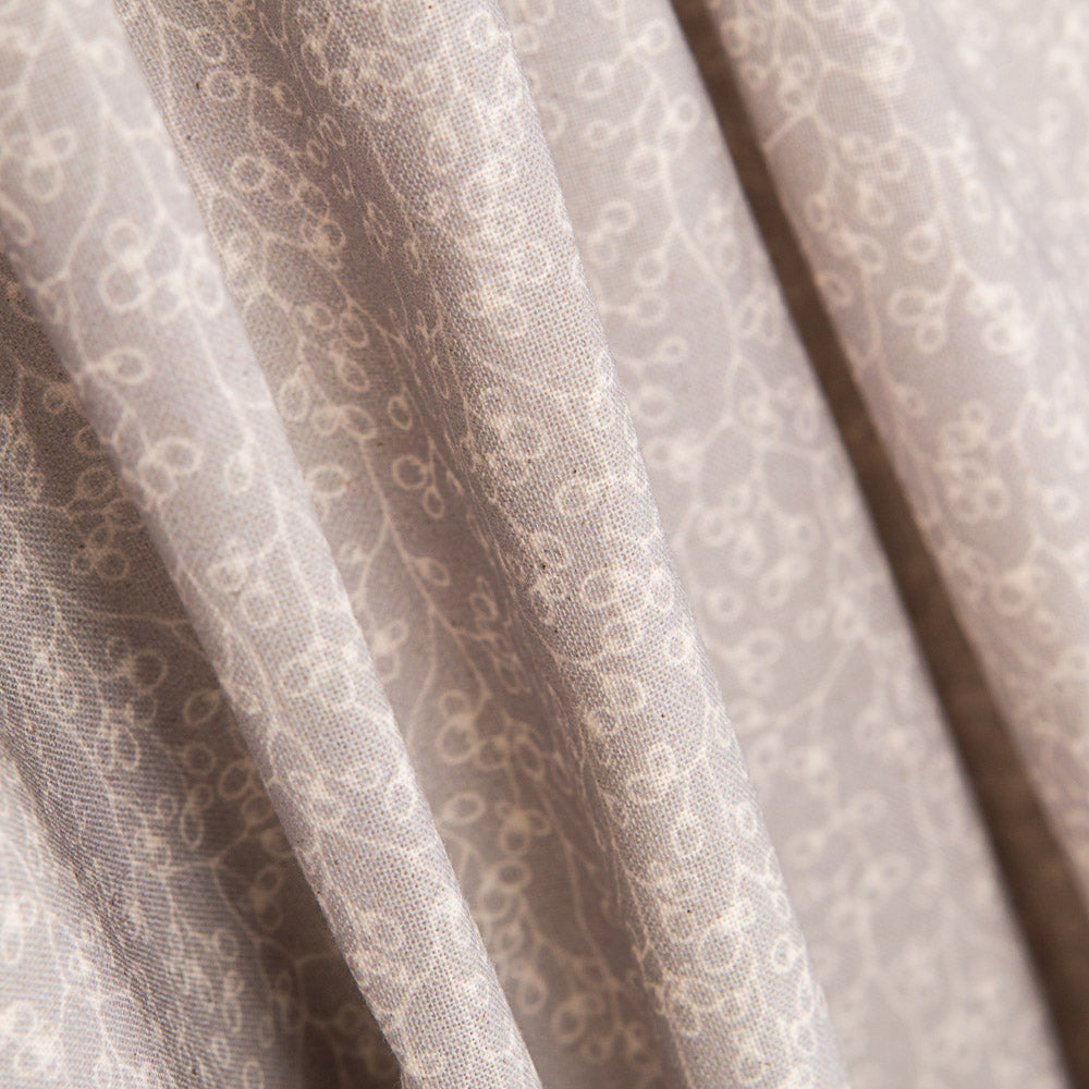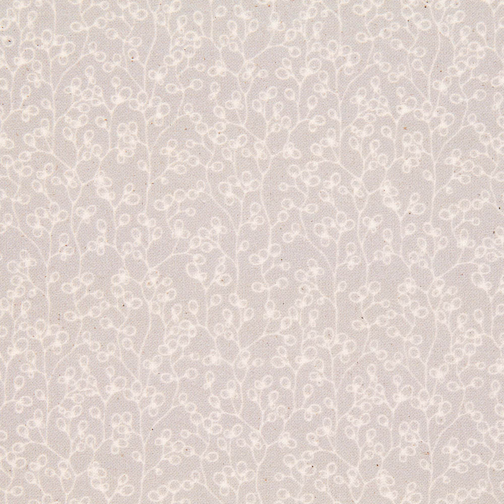 Algodón estampado tipo percal con estampado hierbas gris. Tela de algodón orgánico (GOTS) y OEKO-TEX certificado por ICEA de gran calidad, sostenida y suave.