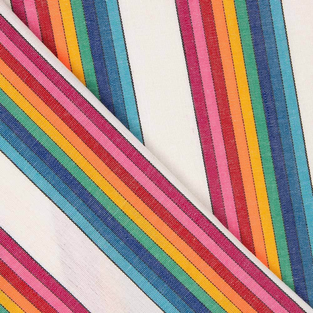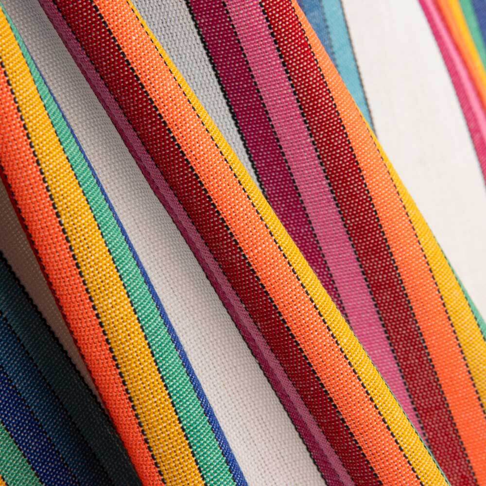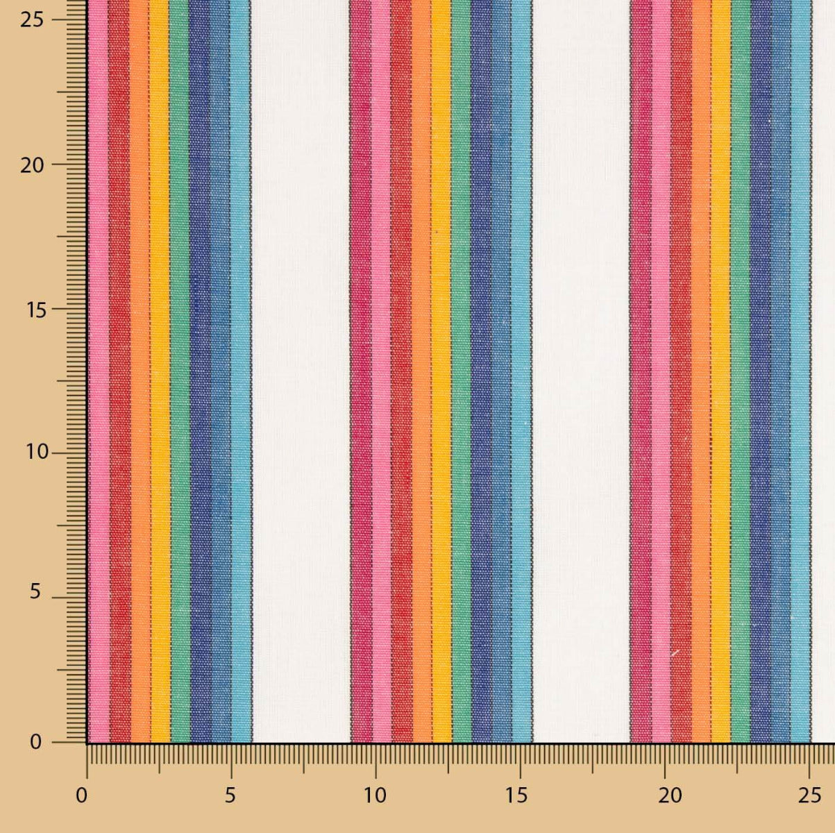 Tela de estilo rústico alpujarreña en multicolor con el fondo blanco. Tela de estilo muy característico con grosor y cuerpo para muchos fines de costura como: trajes regionales, decoraciones, tapicería... Tela con tramado de colores muy característicos.