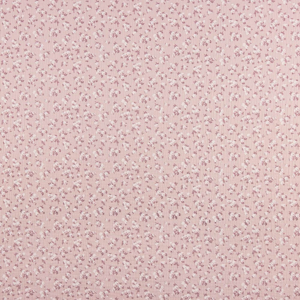 Bambula de algodón orgánico con estampado de flores bouquet rosa. La bambula o doble gasa de algodón, es una tela fresca y fluida, caracterizada por los pliegues que forman la estructura y el cuerpo del tejido. Es una tela fina y opaca, por lo que no necesita ningún tipo de forro. Si buscas una tela de calidad para vestidos de verano, faldas, pantalones o camisas, sin duda la bambula de algodón cumplirá con esos requisitos.