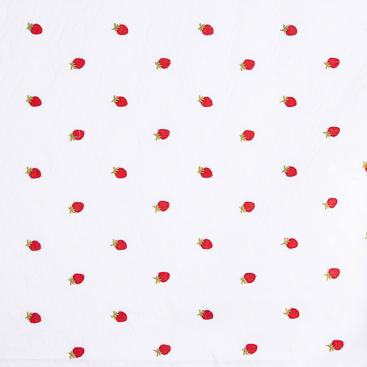 La Batista Algodón Bordada Fresas Blanca es una tela delicada y fresca confeccionada en algodón 100%, con un bonito bordado de fresas sobre fondo blanco que aporta un estilo romántico, natural y primaveral.