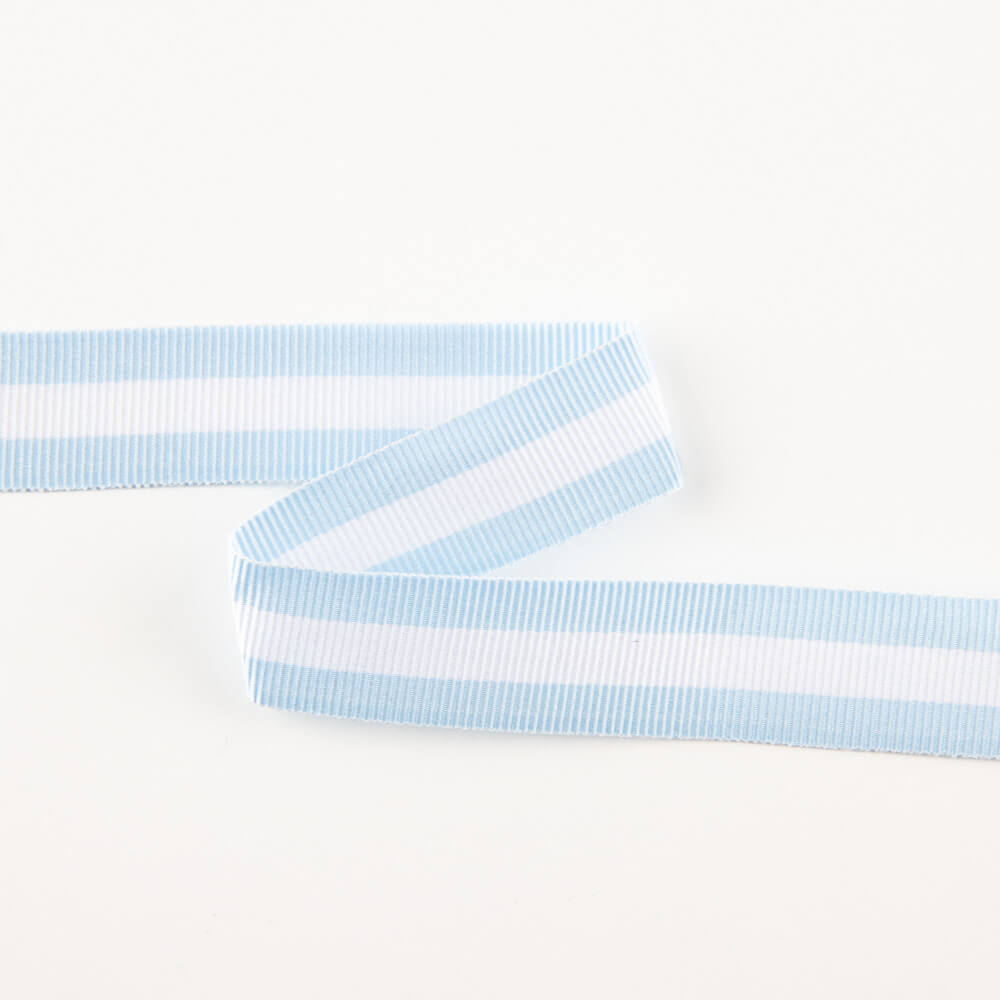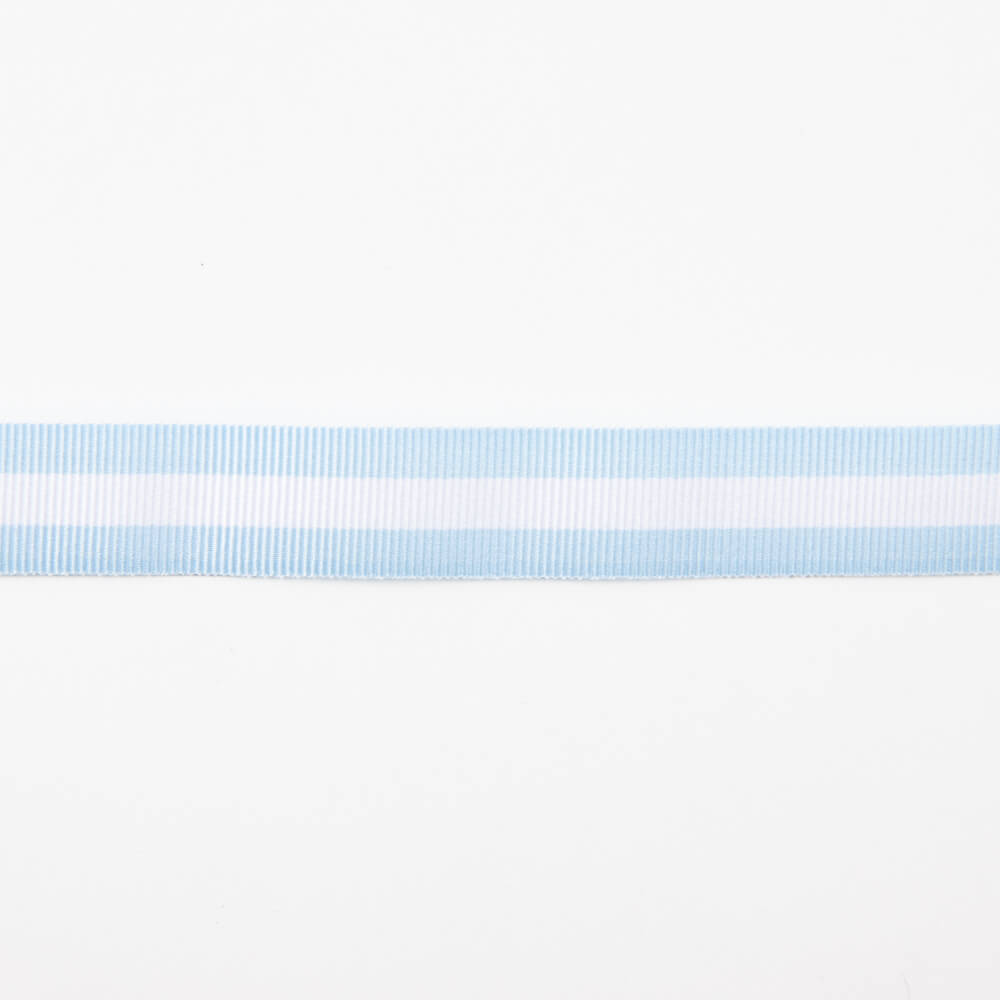 Cinta listada bicolor de 15 milímetros de ancho. Combina color azul y blanco.