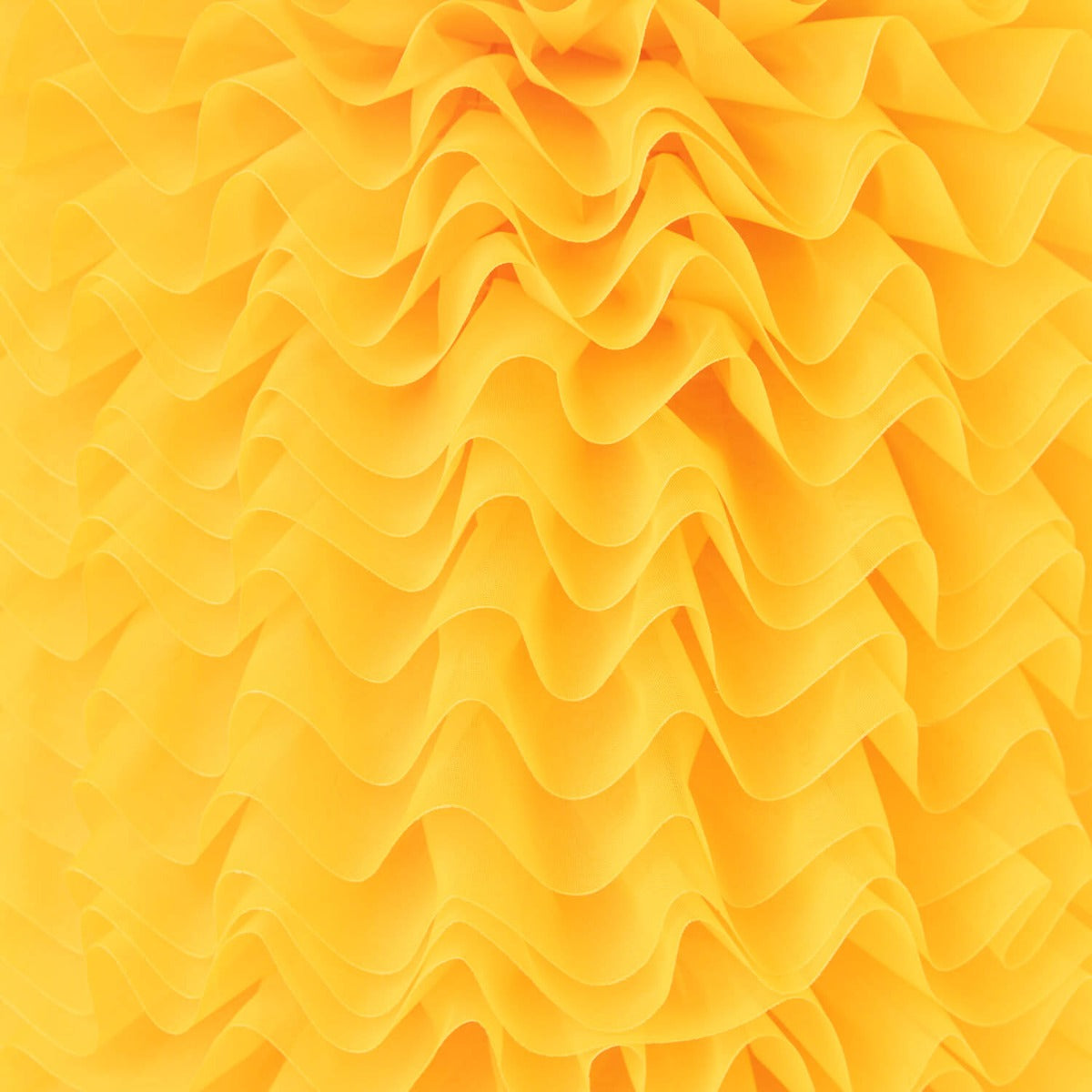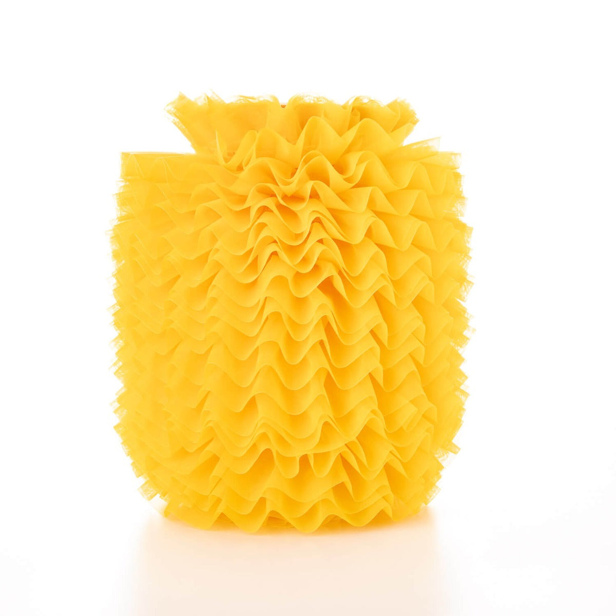La cinta plisada garrucha en color amarillo intenso con tono anaranjado es el complemento ideal para aportar calidez y energía a cualquier diseño.