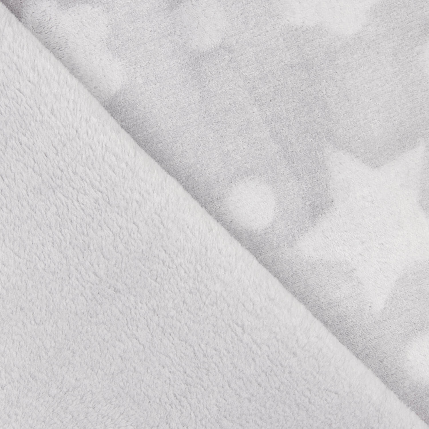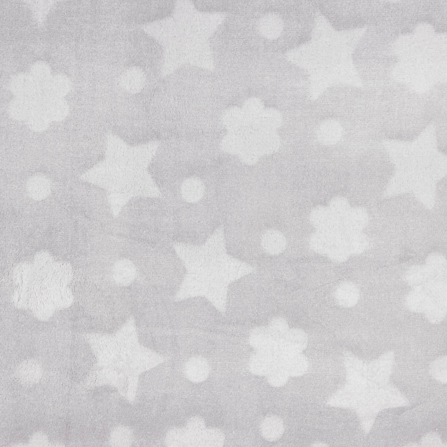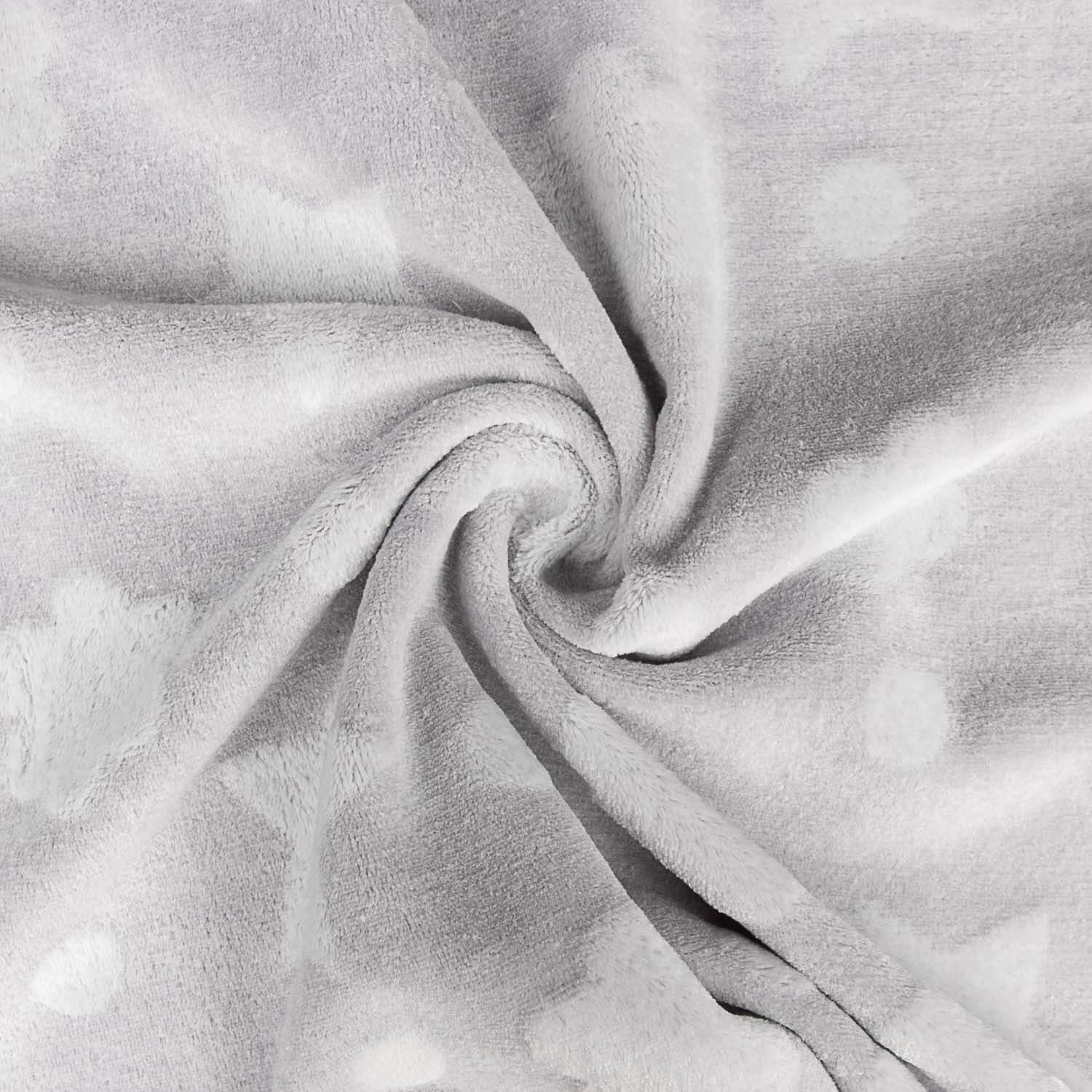 La tela de coralina jacquard con dibujo de estrellas, nubes y topos sobre fondo gris es perfecta para mantener el confort y el calor durante el invierno. Con un ancho de 150 cm y composición de 100% poliéster, ofrece una textura extremadamente suave, cálida y mullida, ideal para mantas, pijamas, batines, arrullos y textil infantil.
