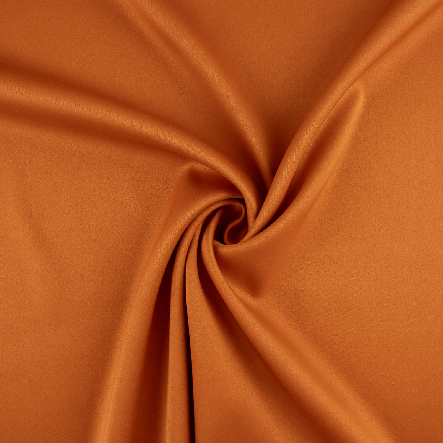 Tela para trajes de flamenca con 3% stretch color teja. Tela stretch con caída, cuerpo y ligera, cierta elasticidad y y una de las caras es satinada. Tela satinada y ligeramente elástica ideal para trajes de sevillana, faldas y vestidos. Fuera de la moda flamenca también es un tejido perfecto para confeccionar pantalones, americanas o blazers, vestidos, y más aplicaciones de moda casual.