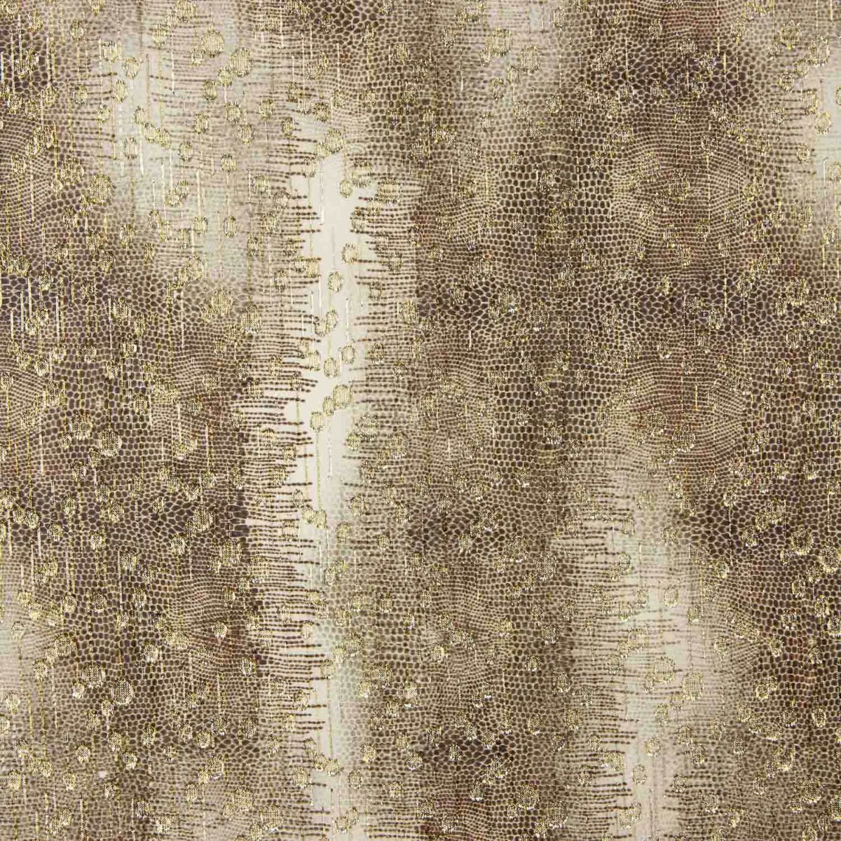 Sofisticación en estado puro con esta gasa georgette lúrex de Ribes y Casals, decorada con un estampado exclusivo de inspiración animal print en tonos dorados y tierra.