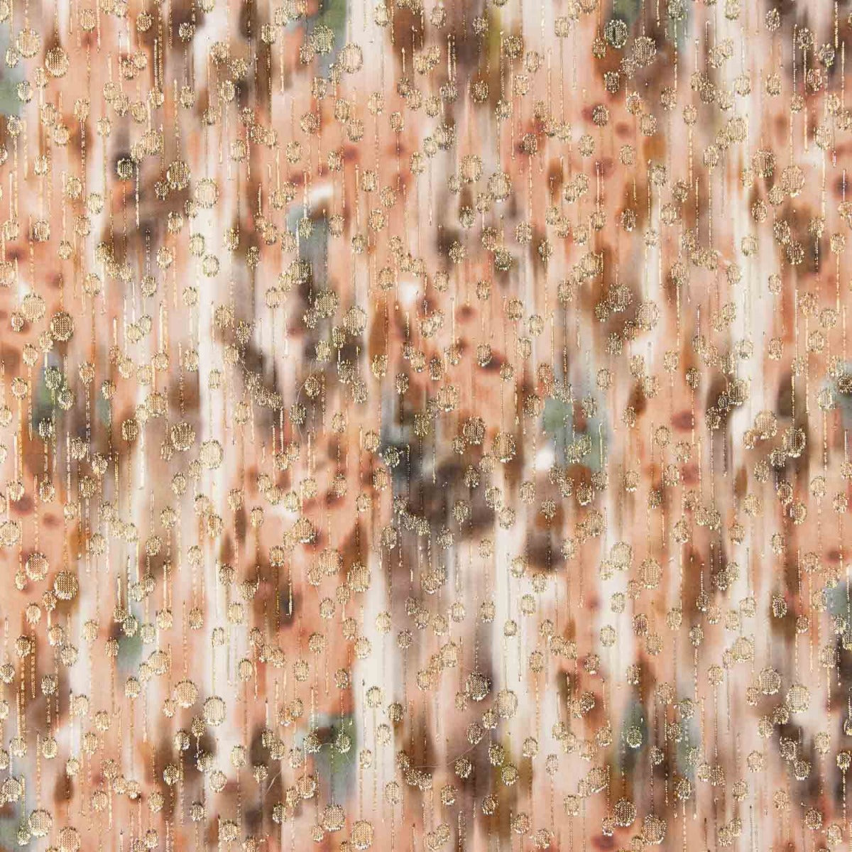 Inspirado en los tonos del atardecer sobre la tierra, este estampado exclusivo de Ribes y Casals combina matices cálidos con un fondo etéreo y pinceladas abstractas que evocan naturaleza y arte.