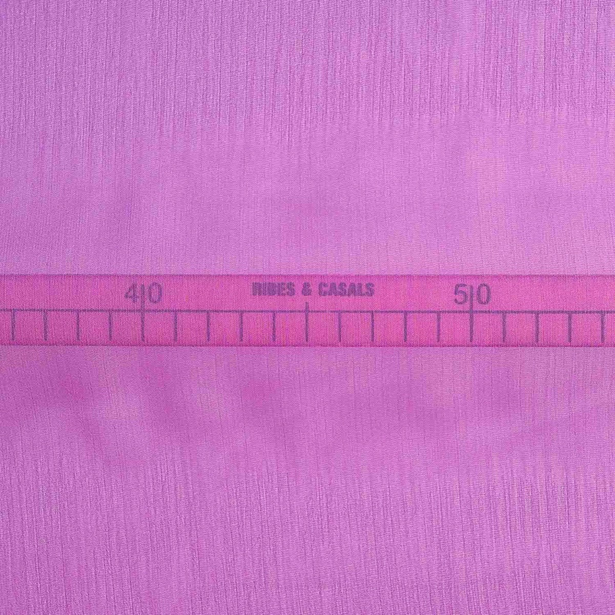 Tela de gasa tornasol de color buganvilla en un tono claro. Tela de gasa translúcida, liviana y vaporosa, fina de textura con cierta rugosidad. La gasa tornasol se caracteriza por el efecto del brillo sobre la tela cambiando los tonos del color con el reflejo de la luz. Gasa ideal para la confección de blusas, pañuelos, chales y chaquetas cuya función sea dejar entrever la prenda de debajo.