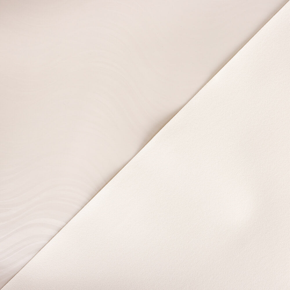 Tela de Hule con efecto ondas de ligero brillo sobre un tono crudo suave, diseño elegante y muy práctico.