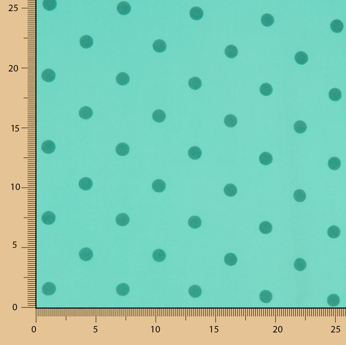 - Diseño: Lunares flocados de 1 cm en verde sobre fondo turquesa