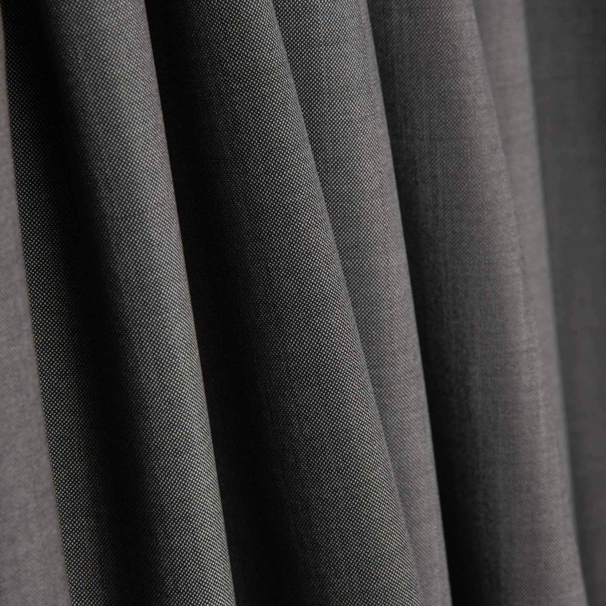Tela de lana 100% en color gris, de tacto frío, ligero y con la firmeza necesaria para confección de prendas de sastrería de alta calidad como trajes, pantalones o faldas.