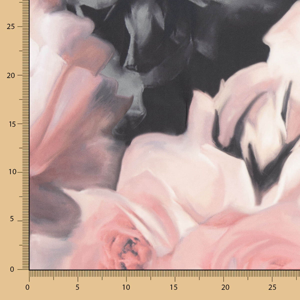 Tela de raso mikado estampada con flores en cenefa de color rosas. El dibujo es en horizontal por lo que es recomendable coger el contorno de cintura. Tela estampada de flores de colores, con cuerpo, de textura muy suave y agradable, ideal para la confección de vestidos de fiesta y ceremonias, así como para faldas y boleros.
