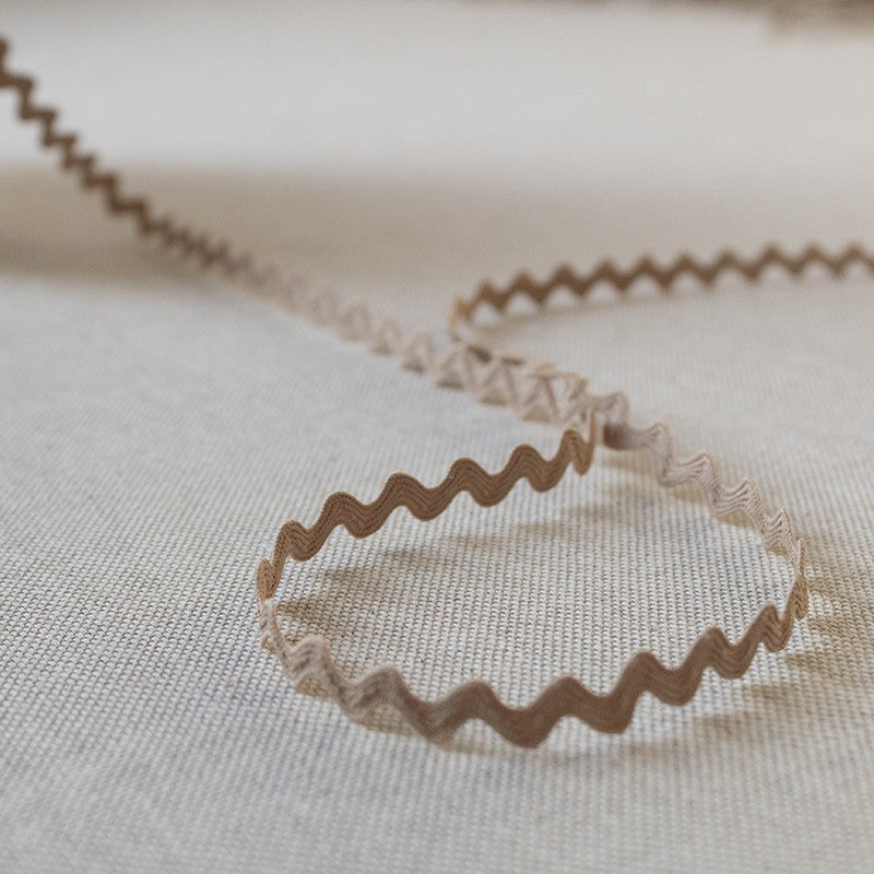 Compra na nossa retrosaria online fita ondulada por metros de 9 milímetros em cor camel.
