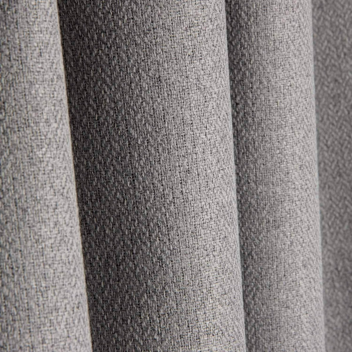 Tela black out total estilo rústico gris oscuro. Tejido oscurante para cortinas ignífugas. El black out es una tela para cortinas muy opaca, gruesa y caída, con acabado simulando falso liso. Ofrece un poder oscurante del 99% de opacidad, ideal para ensombrecer estancias evitando la entrada directa del sol.