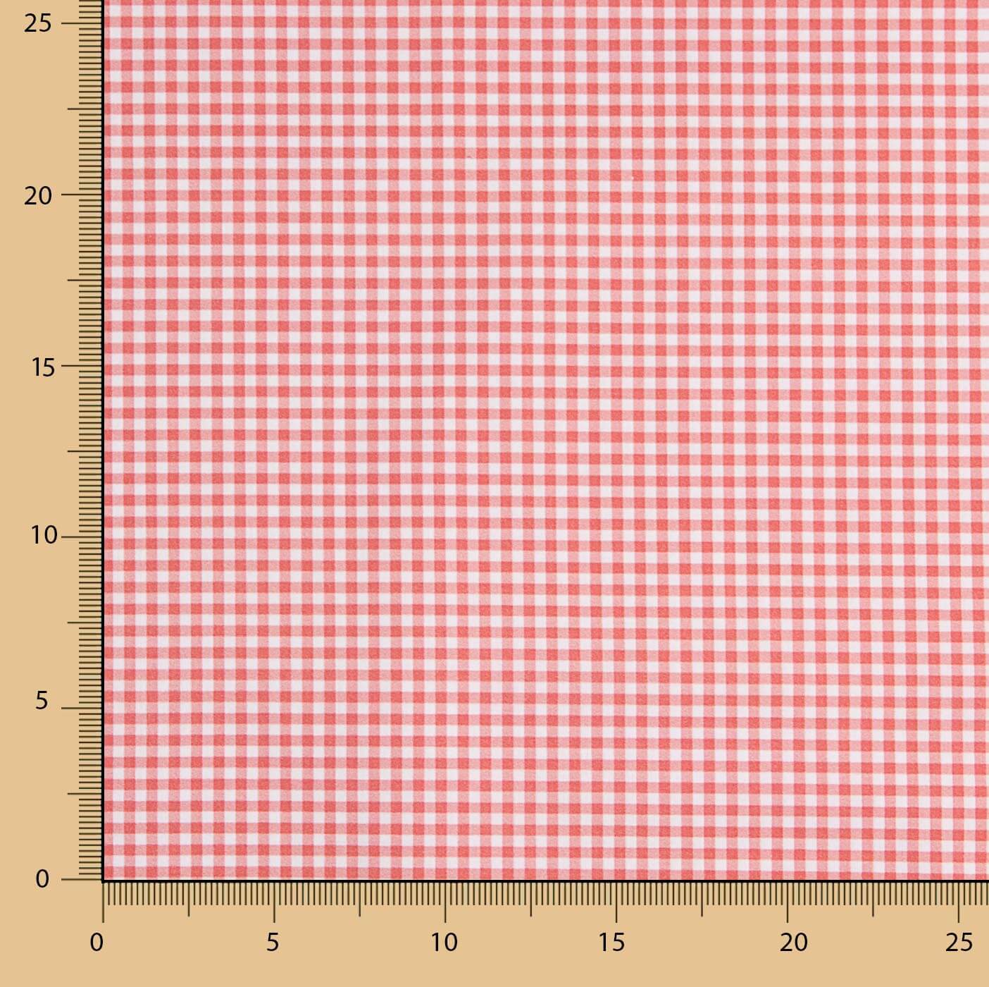 Percal Estampado Cuadros Mini Rojo confeccionado en algodón 100% y tejido en percal de 200 hilos, que ofrece suavidad, frescura y excelente resistencia. Presenta un delicado estampado digital de cuadros mini en tonos rojo y blanco, con un tamaño aproximado de 3 mm por lado, ideal para confección y decoración textil.
