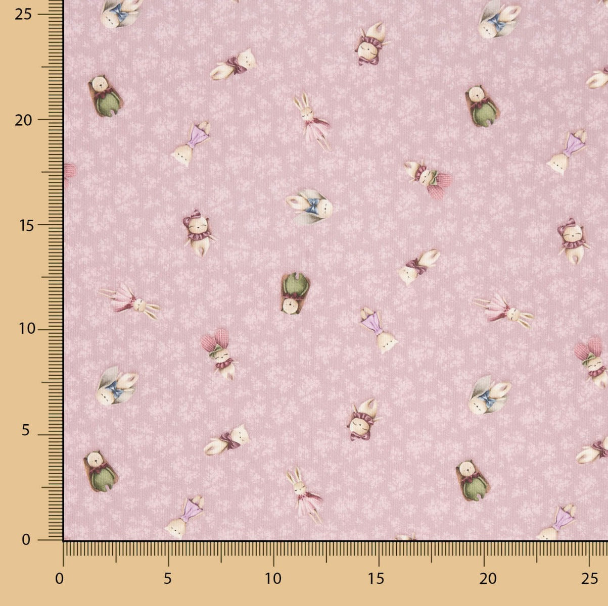 Este adorable piqué de algodón presenta un encantador estampado de conejitos vestidos, perfecto para proyectos infantiles llenos de ternura.