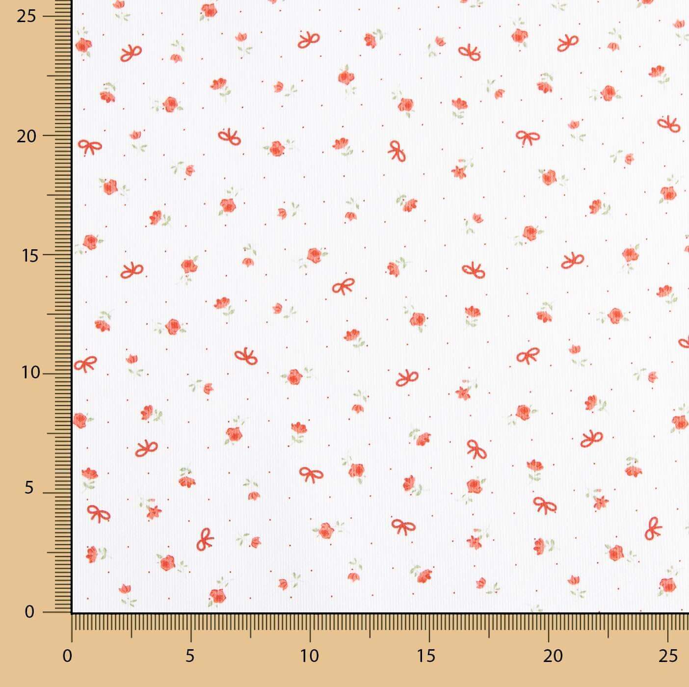 Tela de piqué 100% algodón con delicado estampado de pequeñas flores rojas combinadas con mini lazos a tono sobre fondo blanco. El tejido de piqué se caracteriza por su textura ligeramente en relieve, fresca, transpirable y con cuerpo, ideal para prendas cómodas y con estructura. Su diseño romántico y atemporal es perfecto para confección infantil, moda bebé y prendas de primavera y verano. Ideal para la confección de vestidos, blusas, camisas, conjuntos infantiles, ranitas, faldones, peleles y accesorios. Composición: 100% algodón | Ancho: 150 cm | Tipo de tejido: Piqué | Estampado: Mini flores y lazos | Uso: Moda infantil y confección.