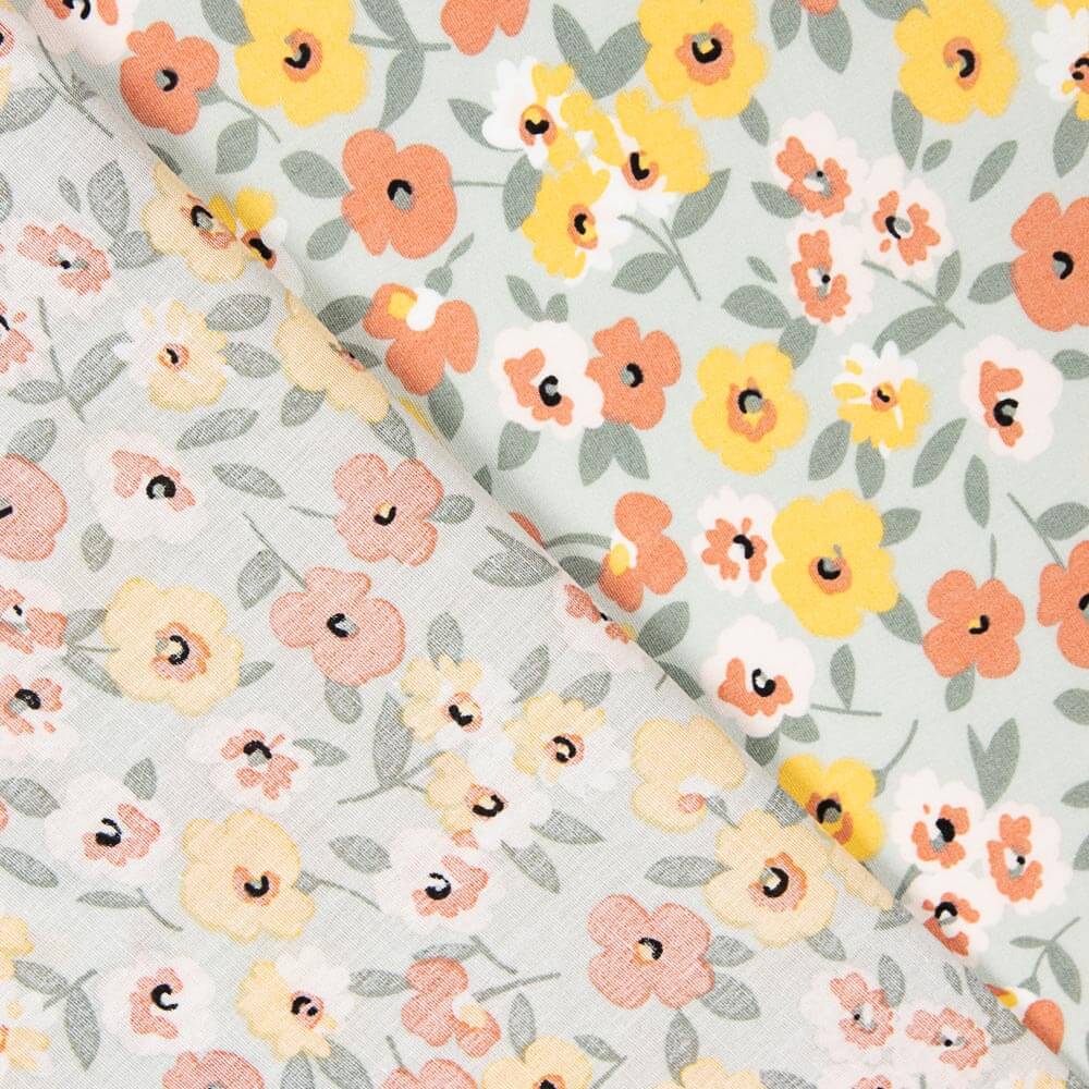 Tela de algodón estampado infantil flores verde salvia. Tela para patchwork, confeccionar tus propias sabanas para cunas, fundas de almohada, accesorios e incluso camisas. Al ser un tejido de algodón 100% aconsejamos un lavado previo a su manipulación.