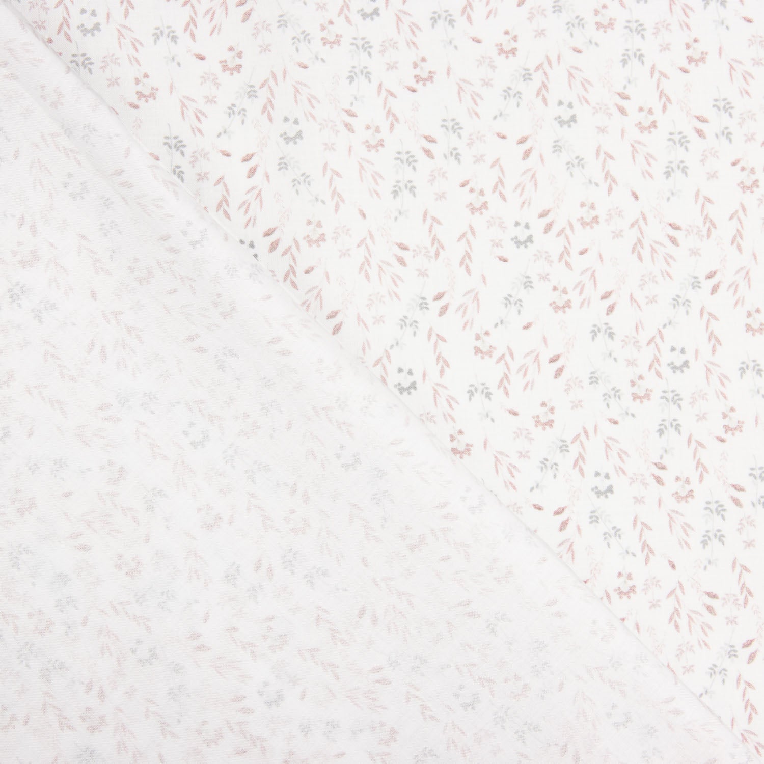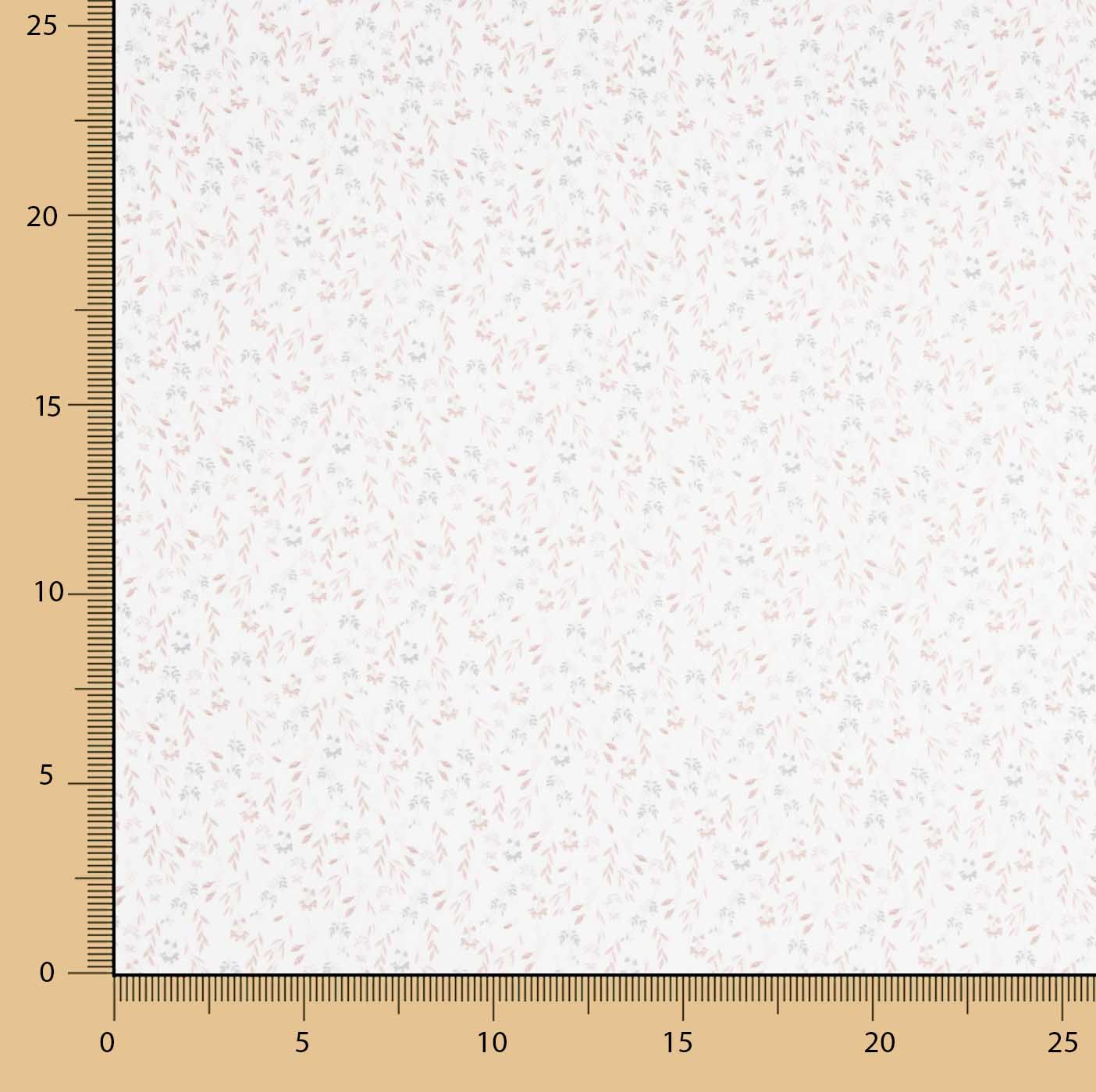 Popelín 100% Algodón estampado Ramitas Nude con ancho de 150 cm. Tejido de algodón natural con delicado estampado de pequeñas flores y ramitas en tonos nude y gris suave sobre fondo claro, ideal para confección femenina e infantil.