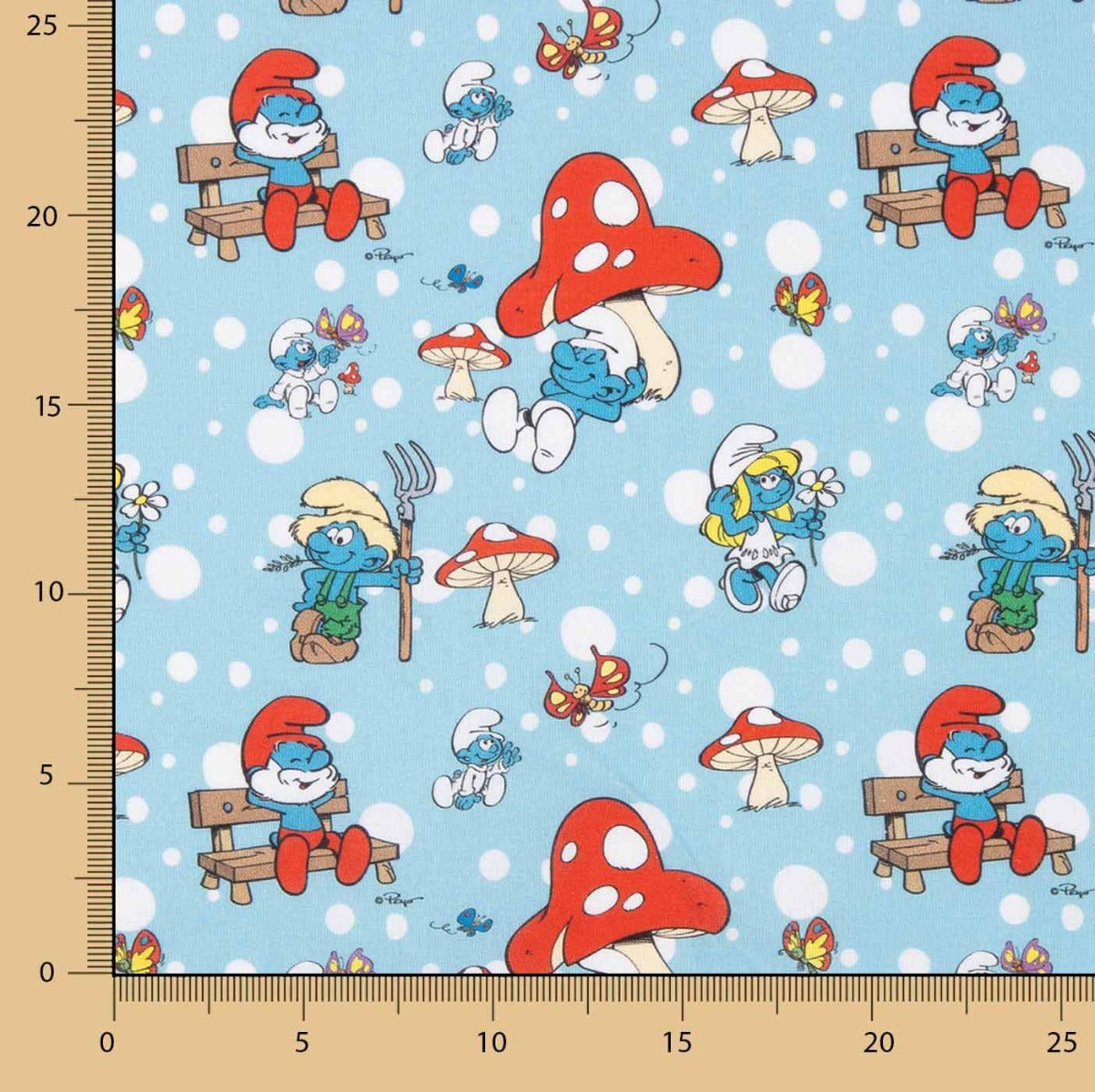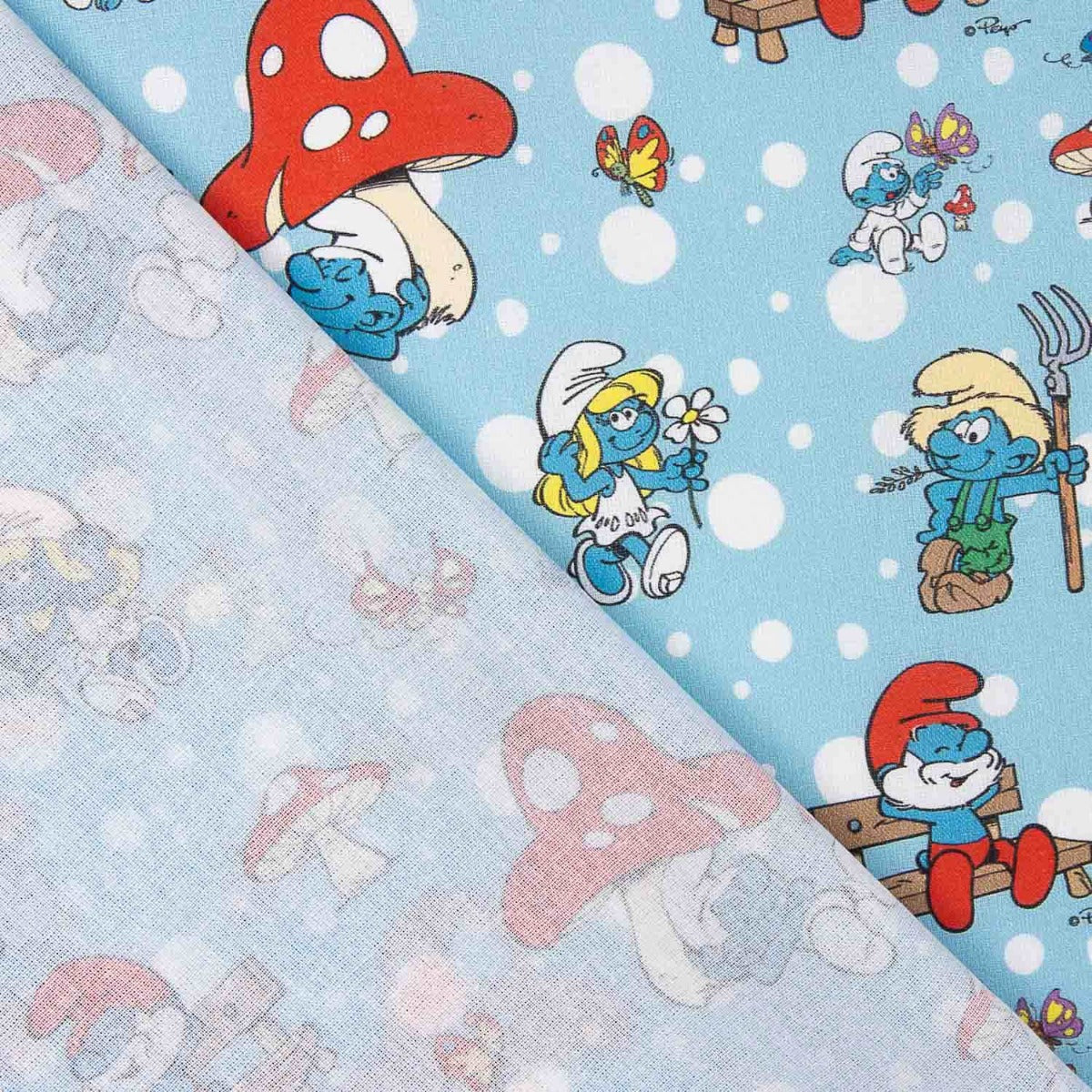 - diseño: personajes clásicos de Los Pitufos en escenas campestres, acompañados de flores, bancos y hongos de colores, perfecto para cuartos infantiles, ropa y complementos. ancho: 138 cm, versátil y fácil de manejar.