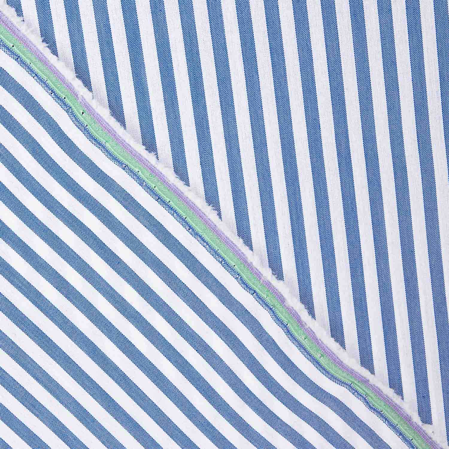 - Estampado: Rayas azul y blanco (raya azul de 5 mm)