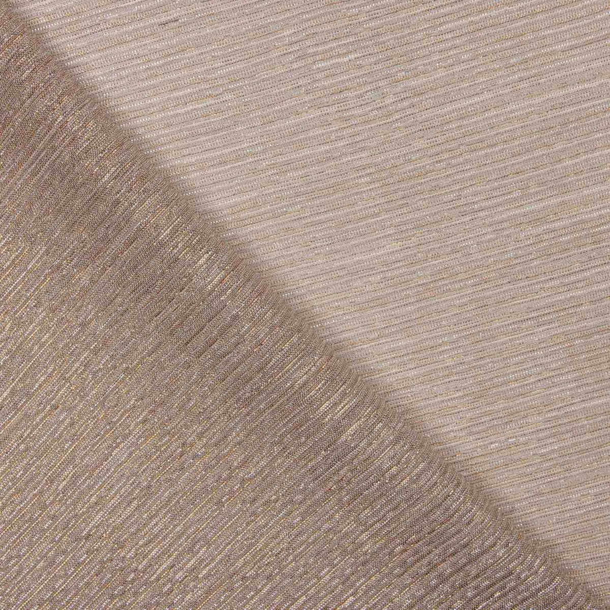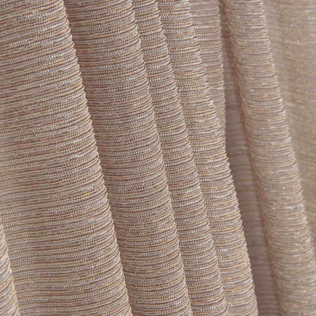 Descubre nuestra espectacular tela de punto de lúrex con efecto bambula en un elegante tono rosa con hilos cobre y metalizados.