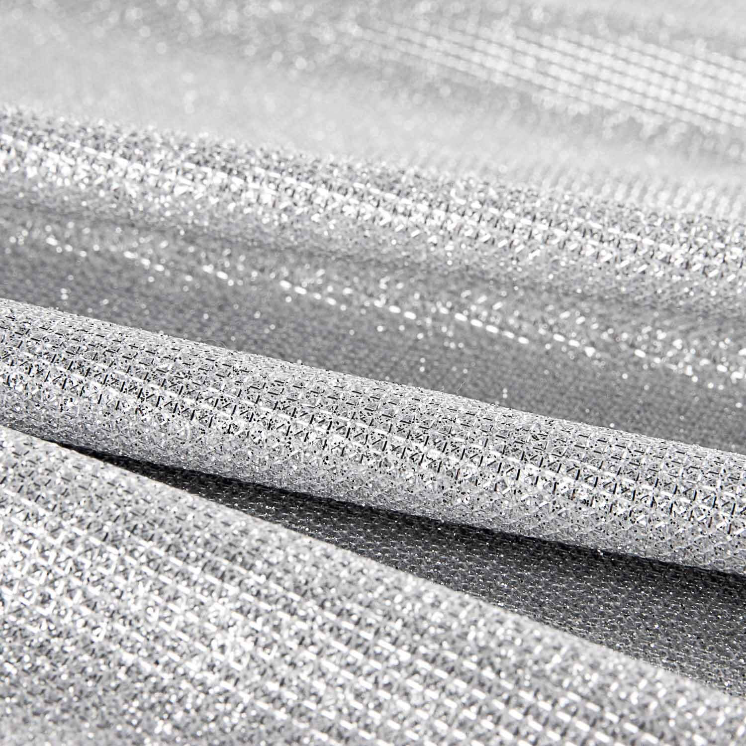 Punto lamé glitter modelo melody de color plata. El punto lamé es una tela muy fina, ligera y de tacto rugoso con reverso liso, no necesita forro. Es una tela brillante y vistosa con la que hacer disfraces de carnaval, espectáculos y decoración.