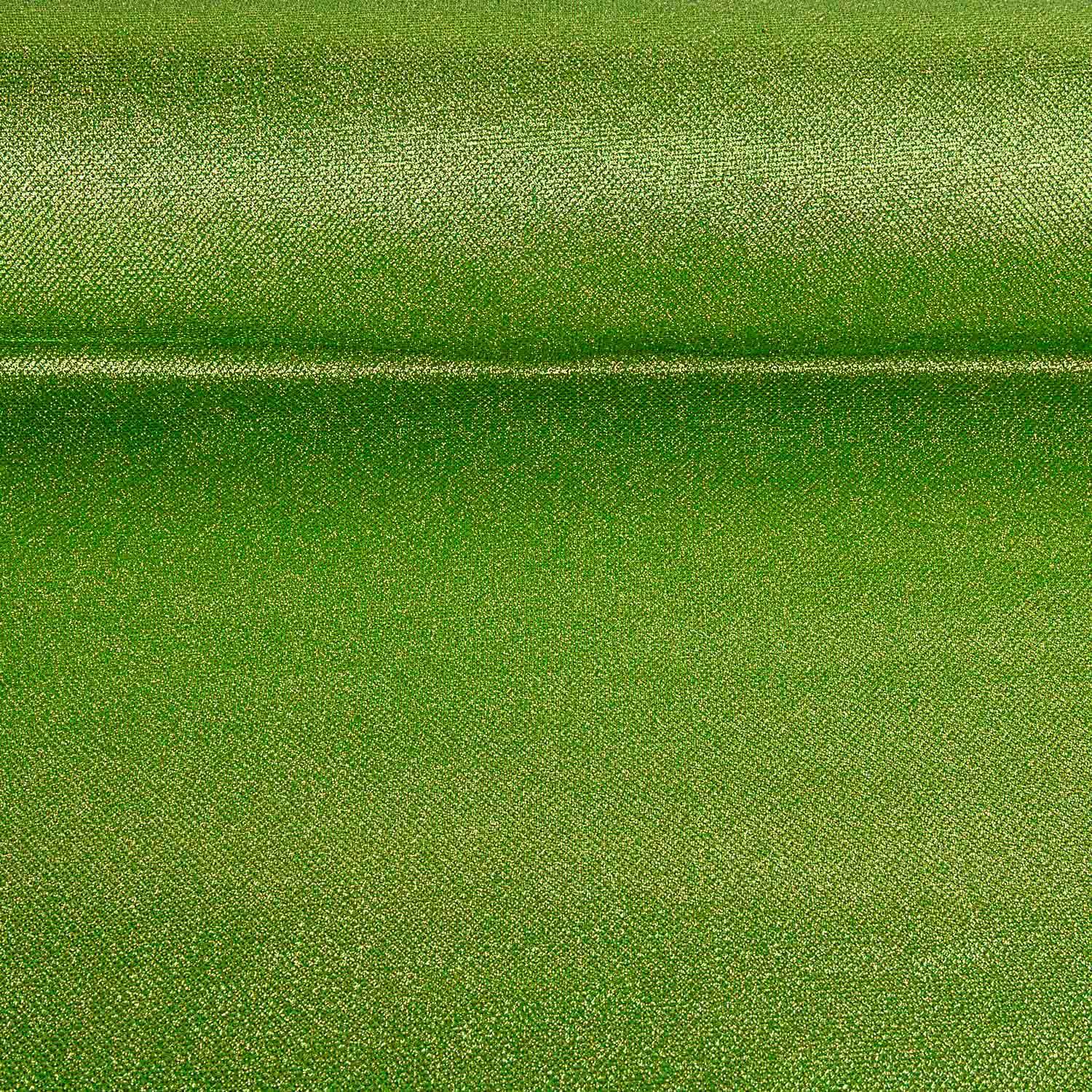 Punto lamé glitter modelo melody de color verde. El punto lamé es una tela muy fina, ligera y de tacto rugoso con reverso liso, no necesita forro. Es una tela brillante y vistosa con la que hacer disfraces de carnaval, espectáculos y decoración.