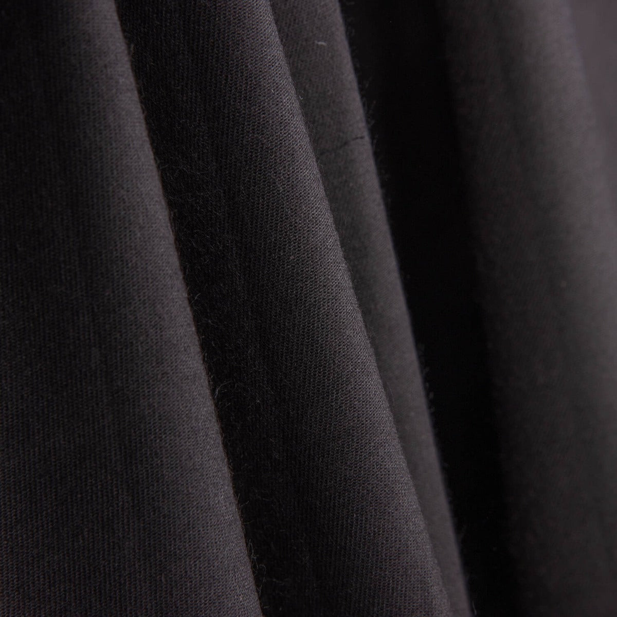 Esta tela de sarga elástica en color gris azulado destaca por su tacto aterciopelado efecto piel de melocotón, combinando suavidad, cuerpo y adaptabilidad.