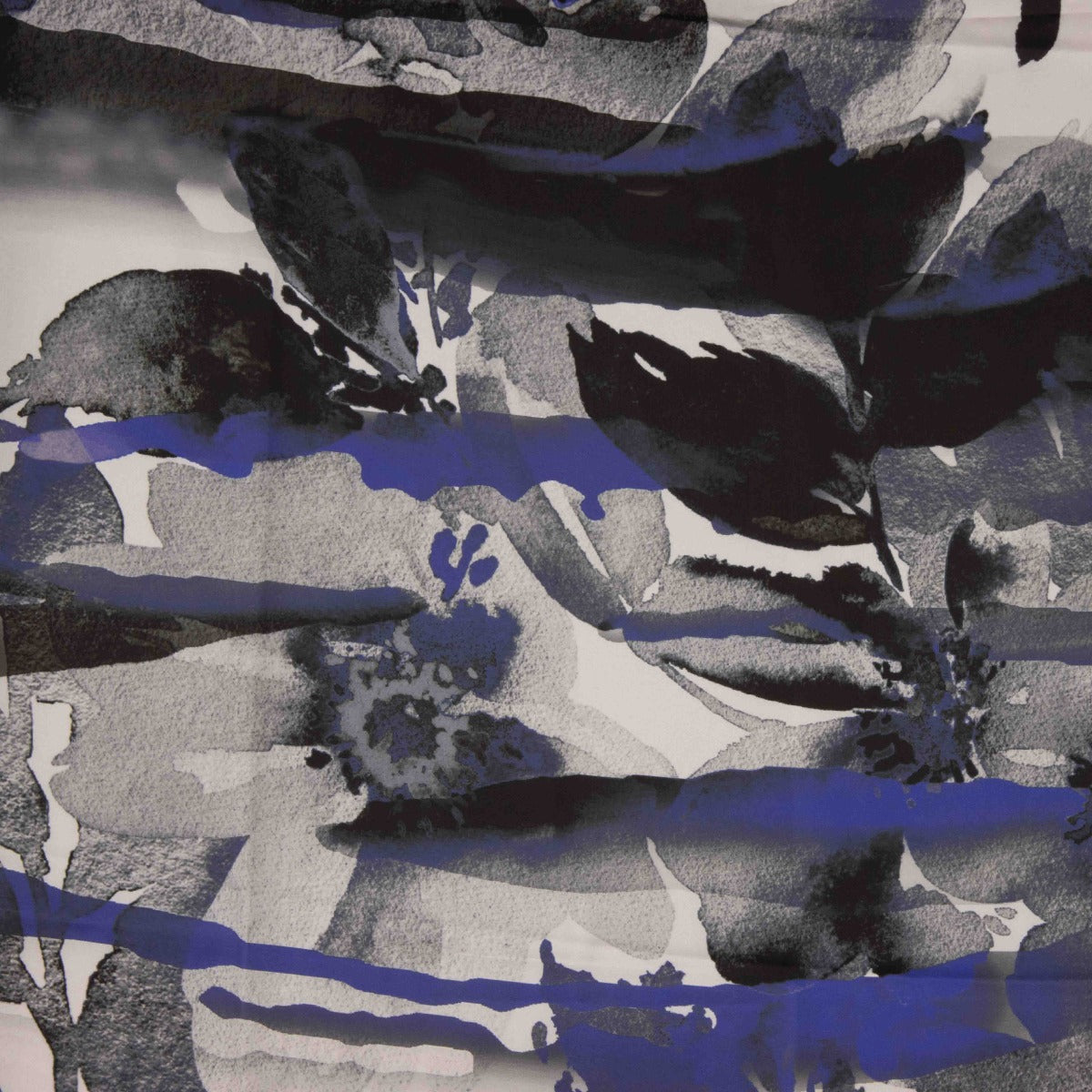 Tela de satén de tacto sedoso y con mucha caída de un estampado modelo Arica azul.