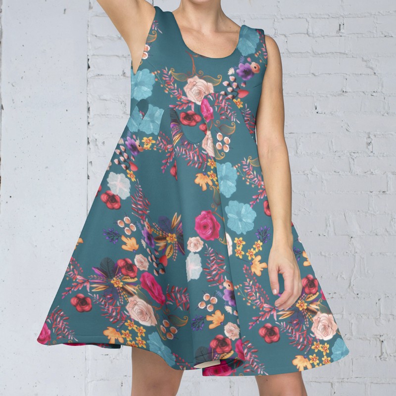 Tela de flores satinada con estampada para la temporada de otoño invierno sobre fondo esmeralda. El satén es una tela con vuelo, de caída muy elegante y de tacto sedoso. Es una tela estampada ideal para coser kimonos, vestidos y vestidos de fiesta, blusas, pantalones de pala ancha, y muchas más prendas de moda.