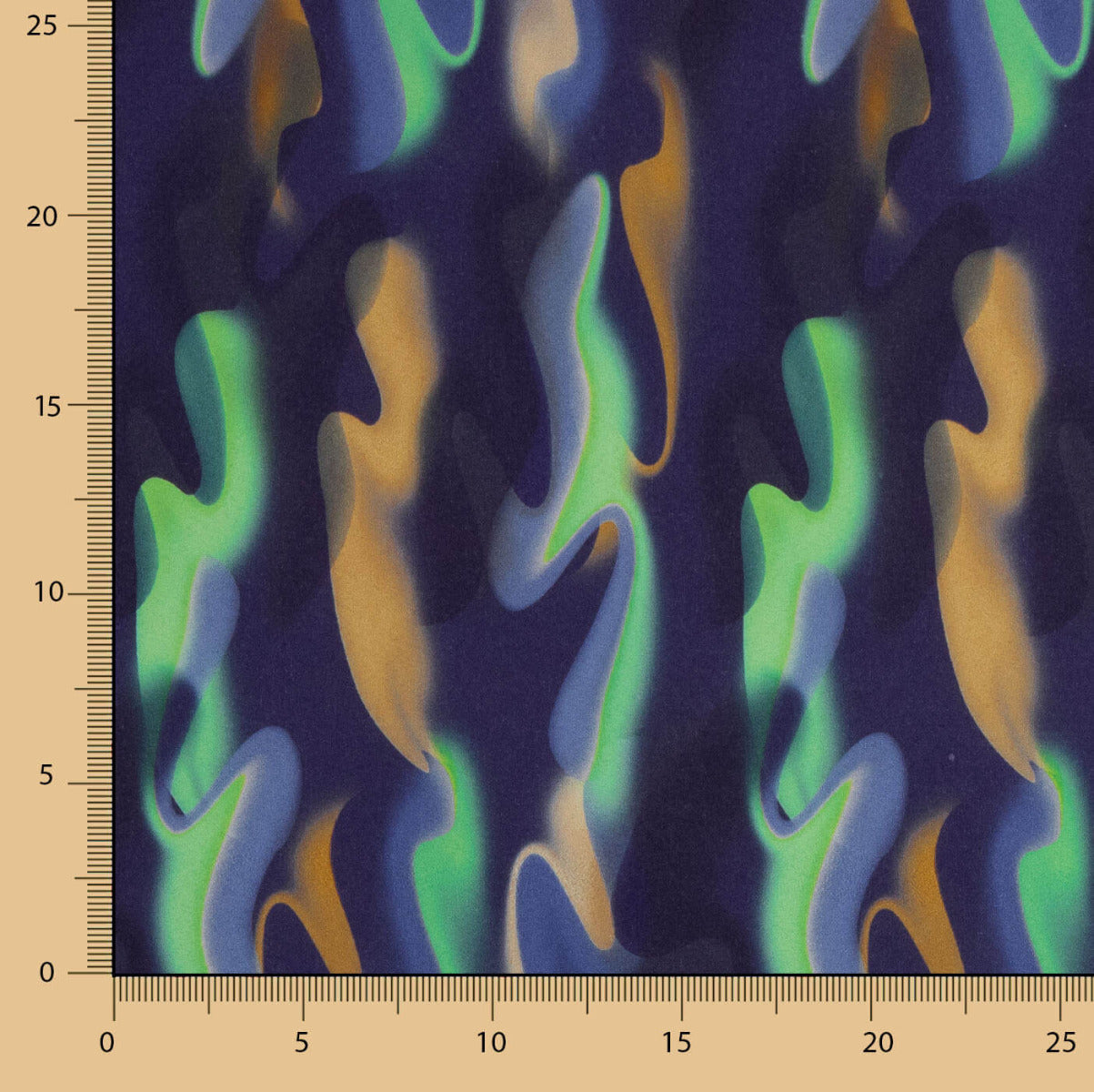 Tela softshell estampada en tonos marinos. El softshell es un tejido técnico de dos caras. Tela opaca, sostenida y con cuerpo.