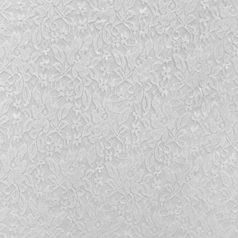 Blonda elástica de color blanco. Tela elástica de encaje con mucha caída, transparente por el calado y con elasticidad, aportada por el porcentaje de Spandex que contiene el tejido. Tela ideal para la confección de maillot, vestidos para espectáculos y todo tipo de aplicaciones y complementos. * Tamaño de Flor 6 cm x 4 cm aproximado.