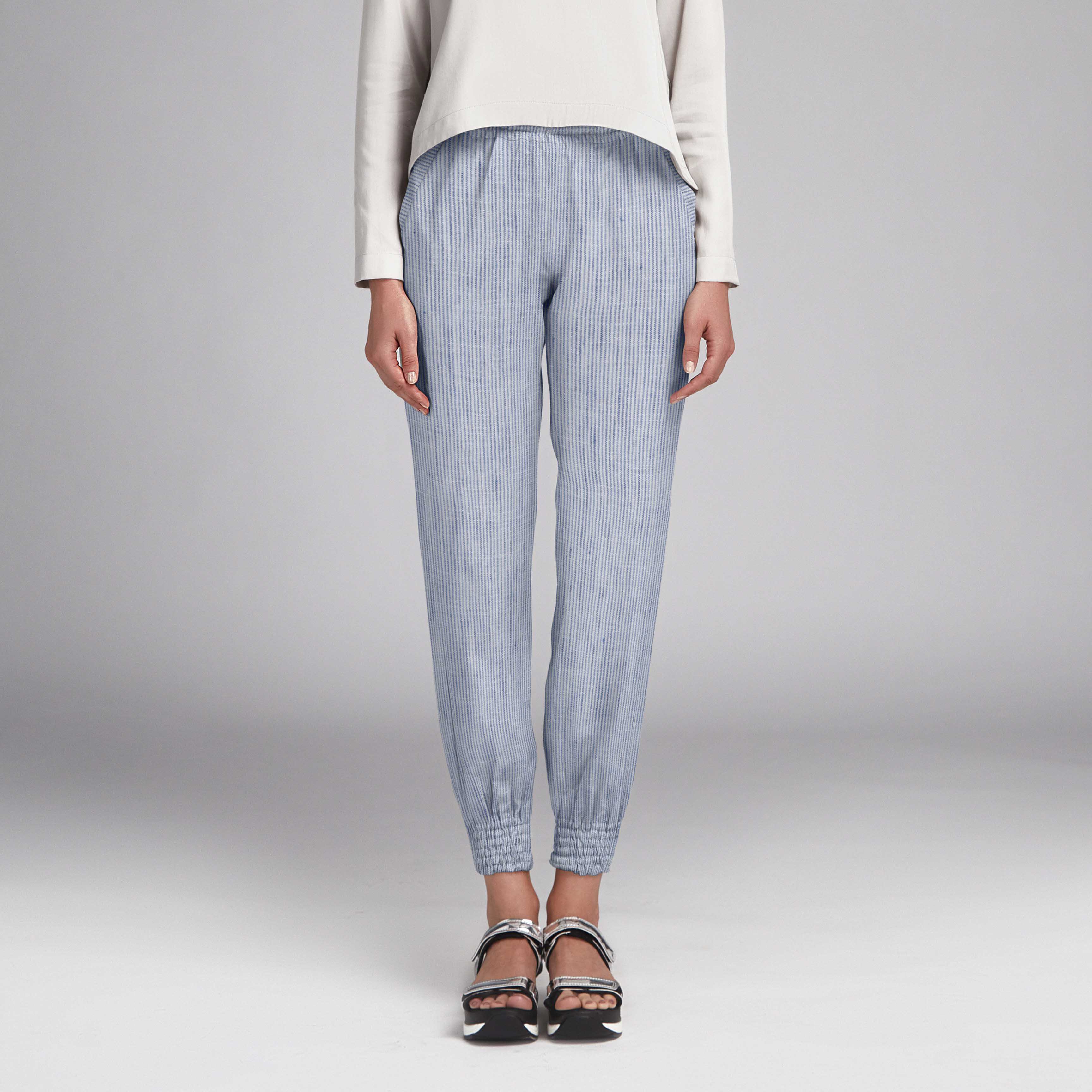 Tela de lino de rayas azules muy finas ideal para camisas. El lino es una tela de fibra natural de gran calidad, fina y sostenida, de gran resistencia y durabilidad. Es la clara alternativa al algodón para confeccionar camisas, pantalones, faldas, blusas e incluso americanas. Tejidos fresco ideal para la temporada de verano, de secado rápido y termo regulable, se adapta bien al clima. El lino también puede utilizarse para confección de cortinas, cojines y decoración del hogar, una tela muy versátil.