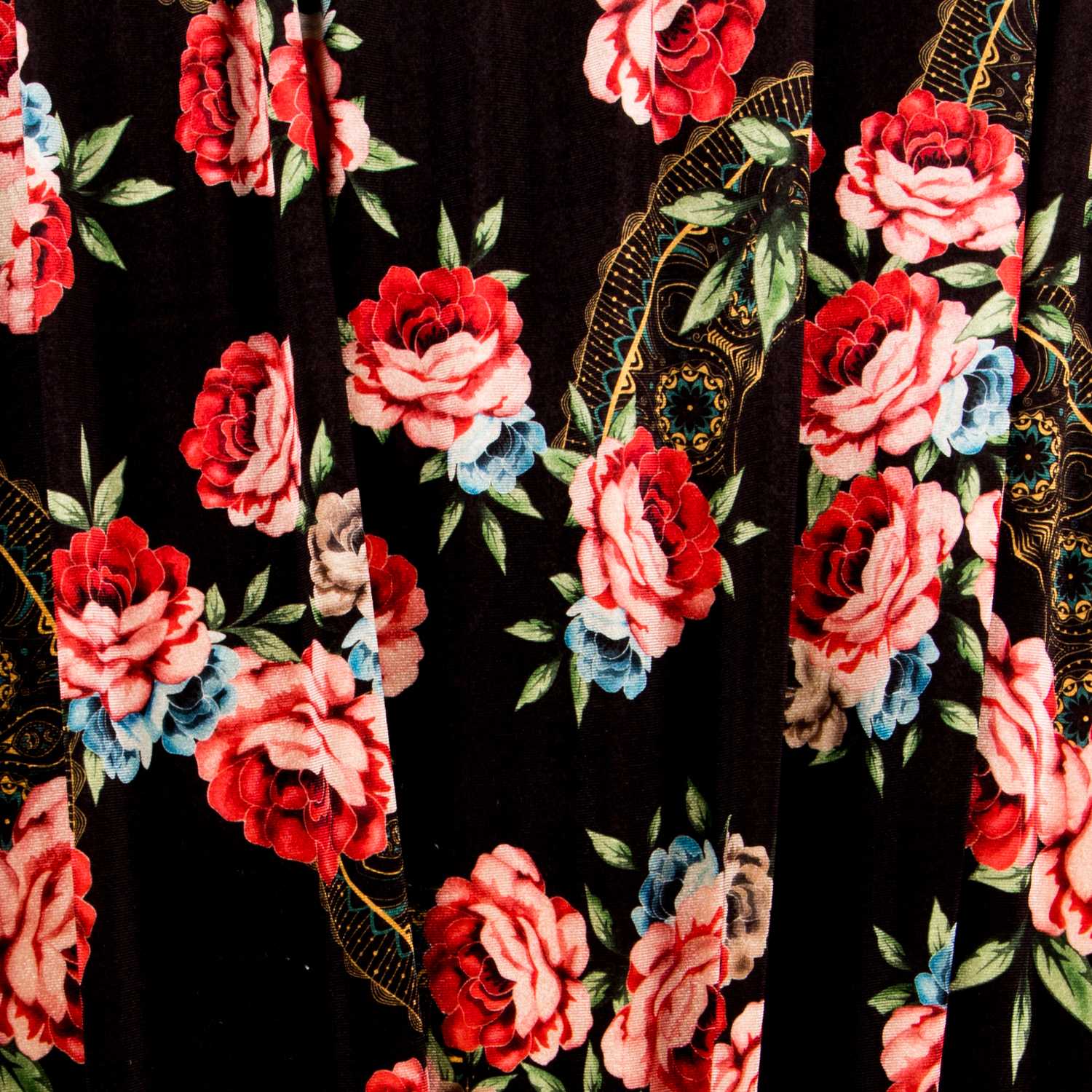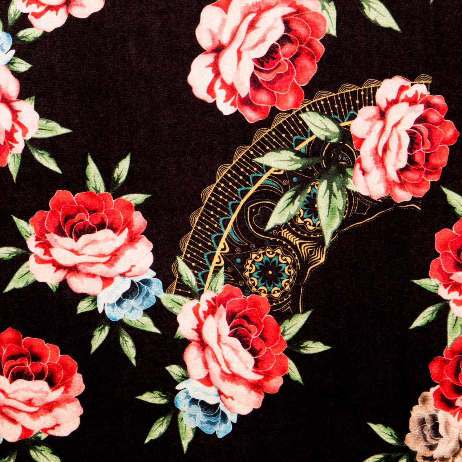 Tela de flores para vestidos de terciopelo elástico muy bonita y elegante. El terciopelo o velvet es una tela fina y con mucha caída, de textura muy suave y aterciopelada formando unas aguas. Con el terciopelo puedes hacer vestidos ajustados de fiesta, faldas e incluso pantalones.