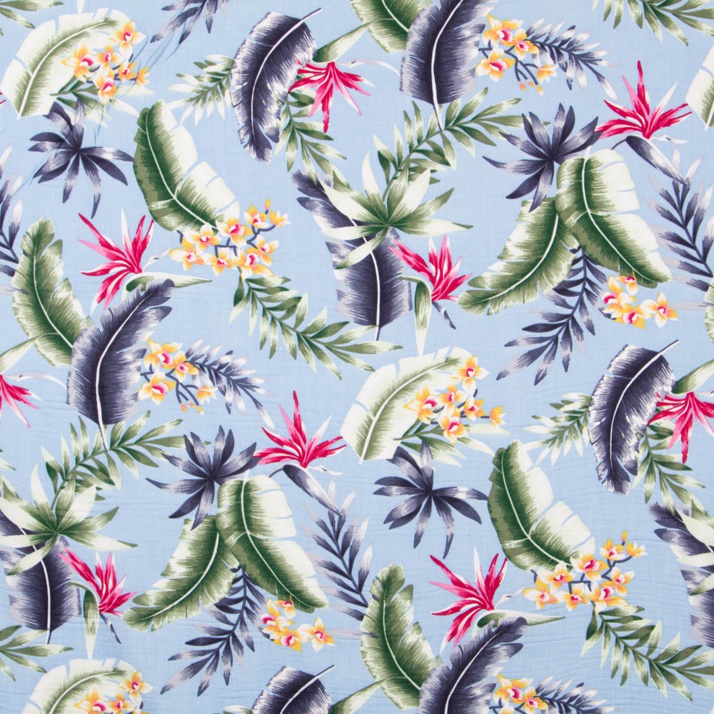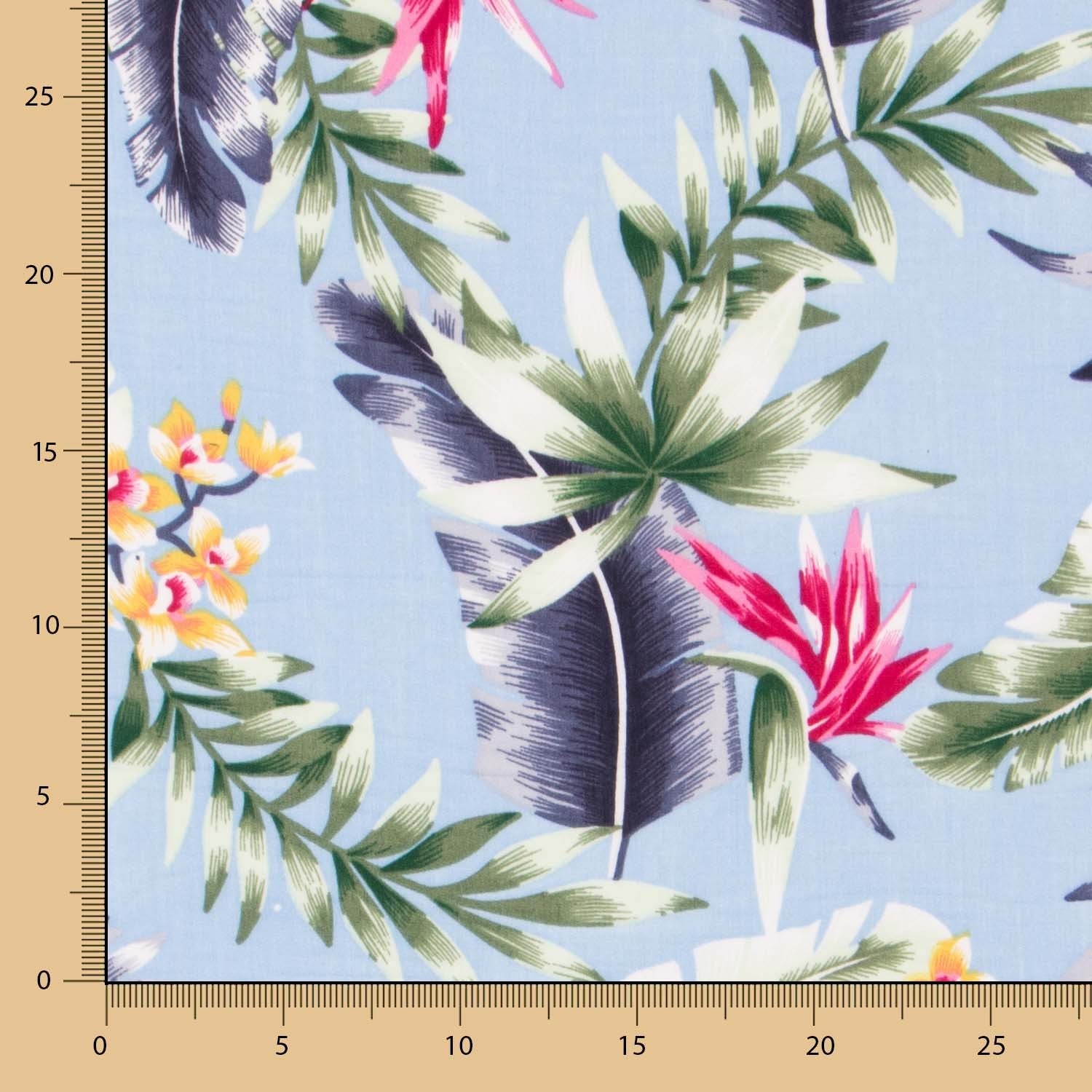 La viscosa es una tela muy fluida, con vuelo y caída. Tela estampada ideal para confeccionar vestidos, faldas, pantalones y camisas.