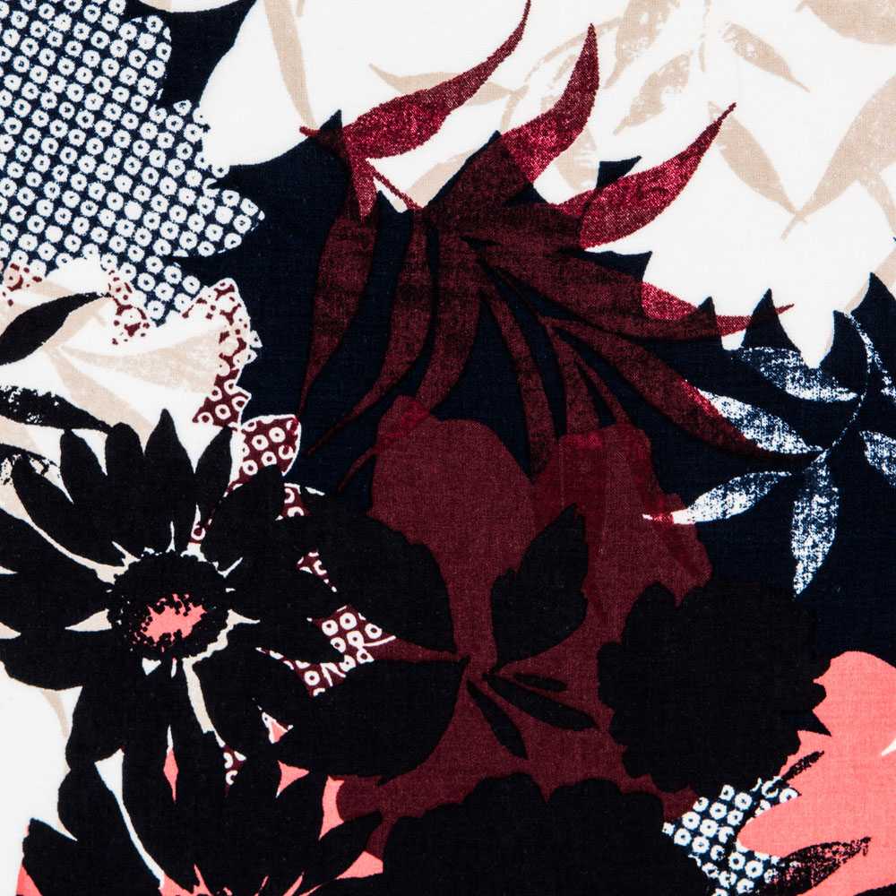 Tela estampada de flores sobre fondo de viscosa azul oscuro. La viscosa se caracteriza por ser una tela muy fluida, fina y muy suave. Tejido de moda para todas las temporadas del año gracias a su versatilidad a la hora de confeccionar. Viscosa estampada ideal para vestidos, faldas, camisas, chaquetas de entre tiempo y kimonos.