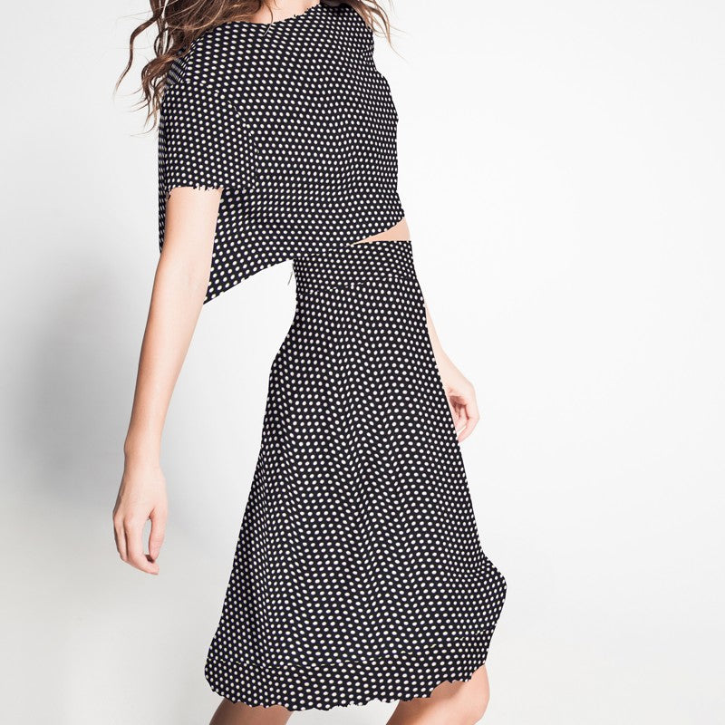 Tela de lunares blancos de 1 milímetros blancos sobre base de viscosa azul marino. La viscosa se caracteriza por ser una tela muy fluida, fina y muy suave. Tela online barata con la que puedes hacer todo tipo de vestidos para verano, camisas y faldas.