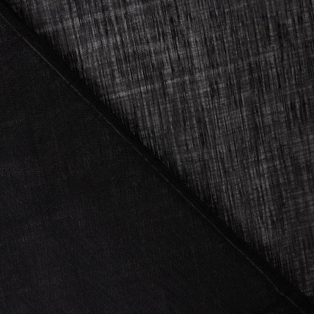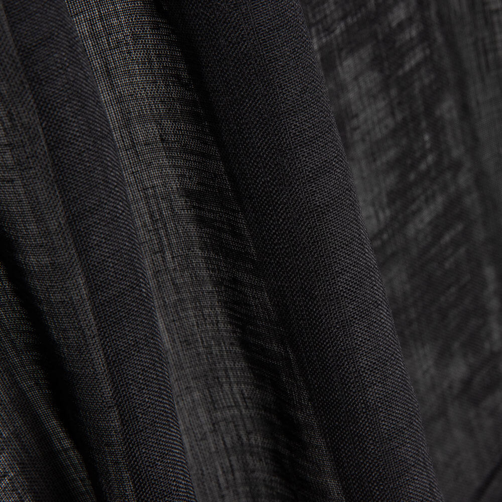 Comprar tela para cortinas a metros. Tela visillo poliéster de color negro liso. Tela de visillo translucida con caída para confección de cortinas con una altura de 270cm. Fácil mantenimiento ya que se puede lavar en casa y no se arruga (se recomienda no utilizar suavizante y lavar con bajas revoluciones, no admite secadora). Consulta a nuestro departamento comercial el metraje necesario para diferentes tipos de cortinas: panel japonés, tablas, cinta fruncidora ...