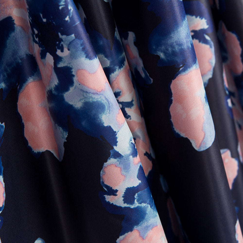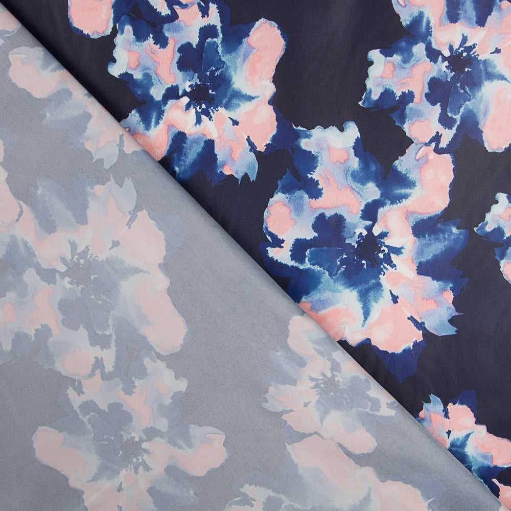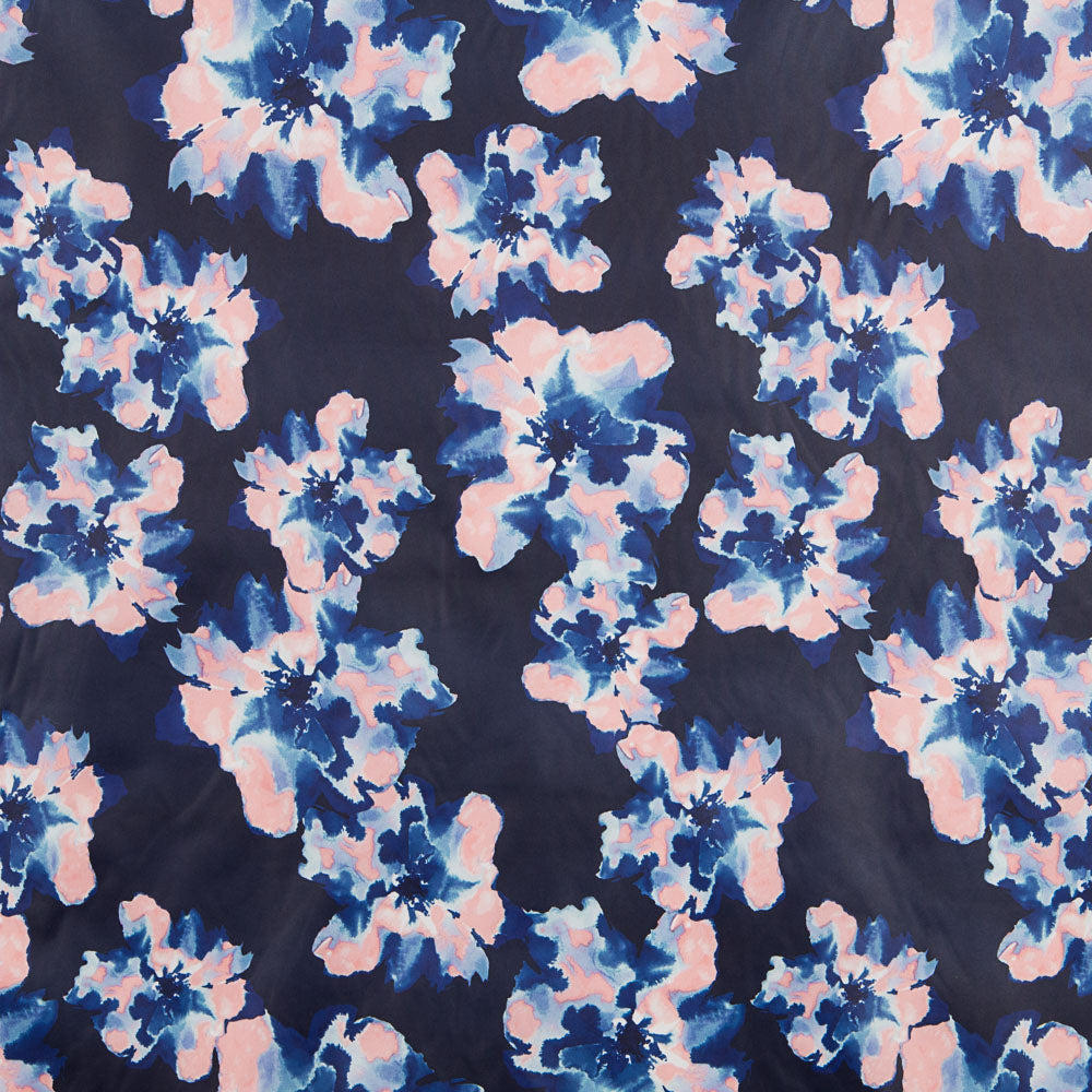 Tela repelente de agua con estampado de flores efecto licuado. El water repellent es un tejido de poliéster fino y muy suave, sostenido y totalmente opaco. Ideal para parcas, chaquetas y cortavientos.